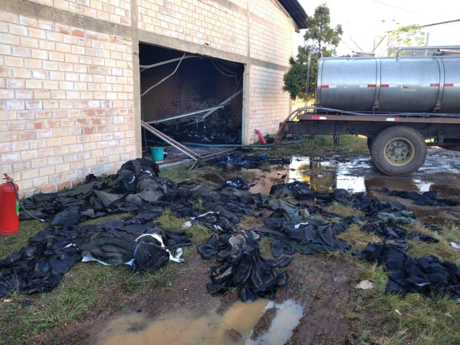 Segundo o responsável pela fábrica, o escritório também foi revirado e ele confirmou que os barracões não possuem seguro. Os tecidos que são usados para a confecção de calças, foram totalmente queimados e muitas máquinas de costura foram danificadas.