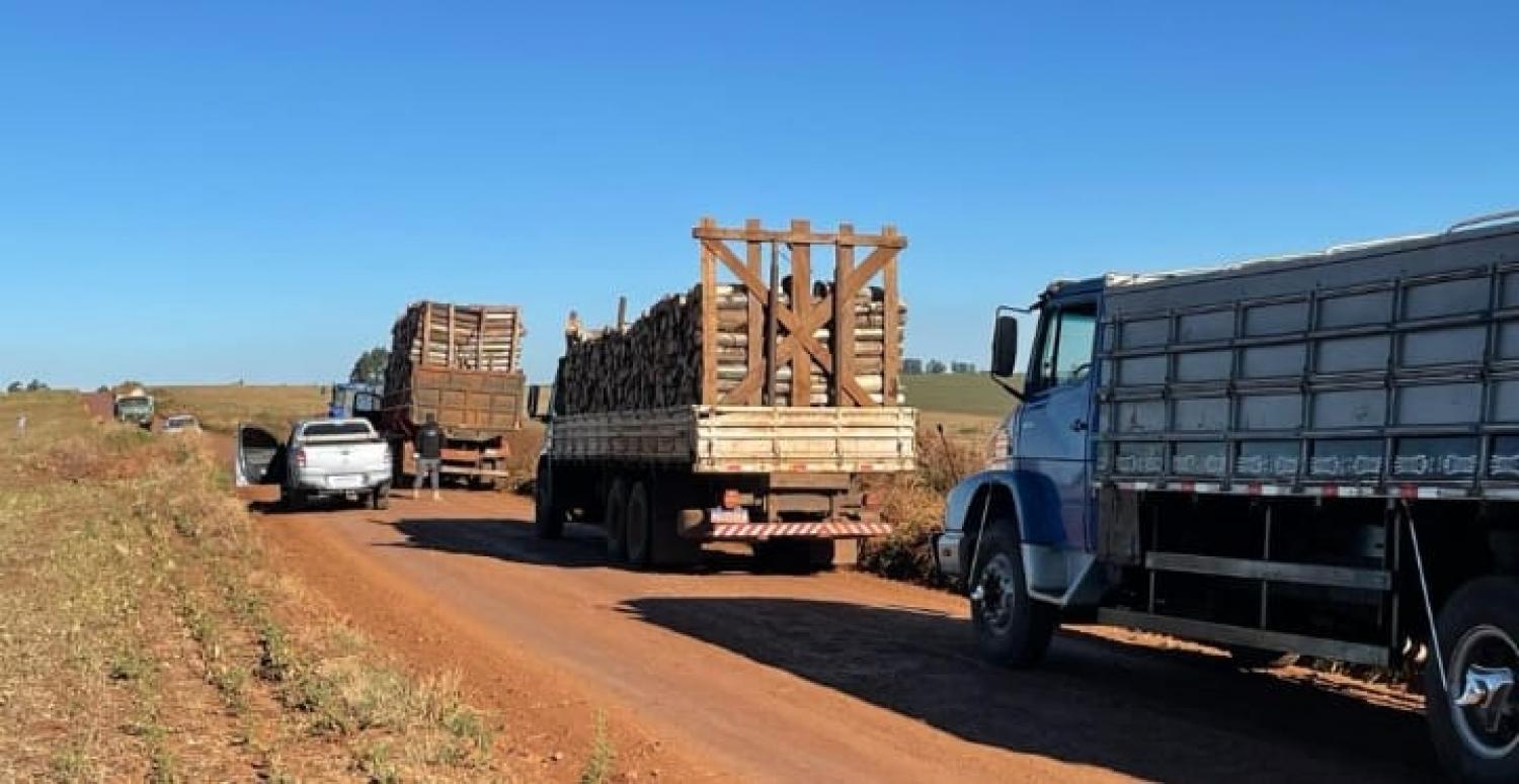Durante a operação, também foram apreendidos três caminhões carregados de madeiras furtadas e mais um trator utilizado no crime.