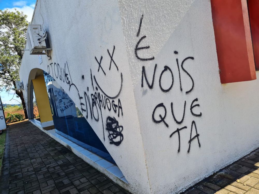 Infelizmente, As paredes da Unidade Básica de Saúde localizada na Praça dos Pioneiros em Coronel Vivida foi alvo de ato de vandalismo por parte de pichadores.