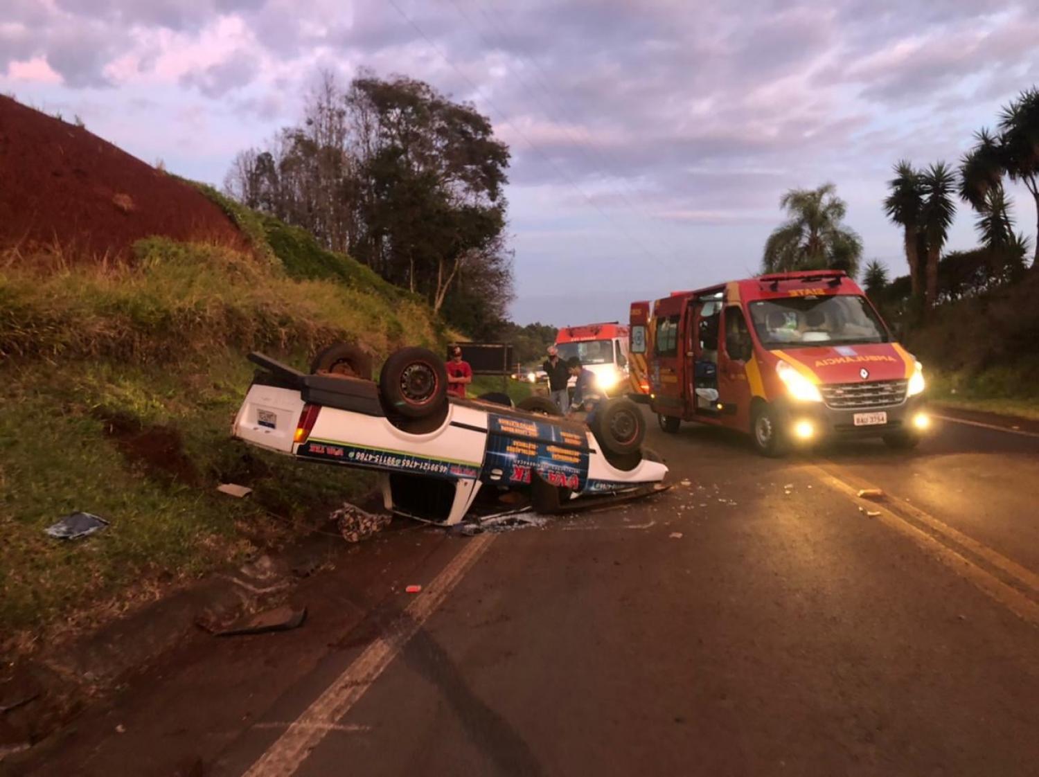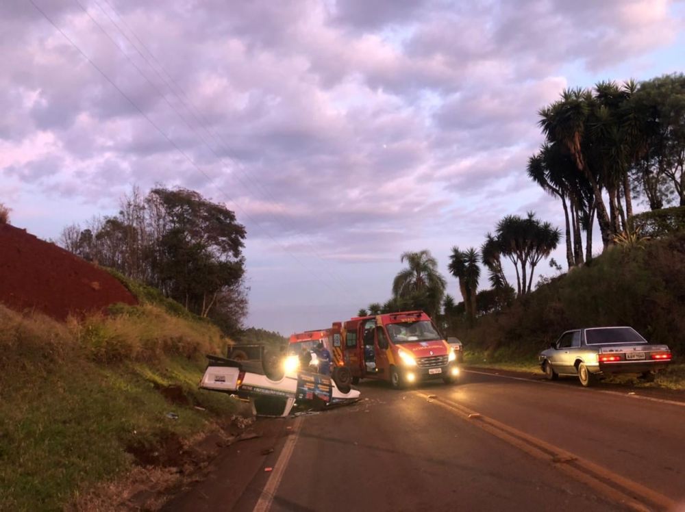 O veículo envolvido no acidente é uma caminhonete Saveiro com placas de Coronel Vivida, ocupado por três pessoas, sendo que duas tiveram ferimentos e uma dispensou atendimento.