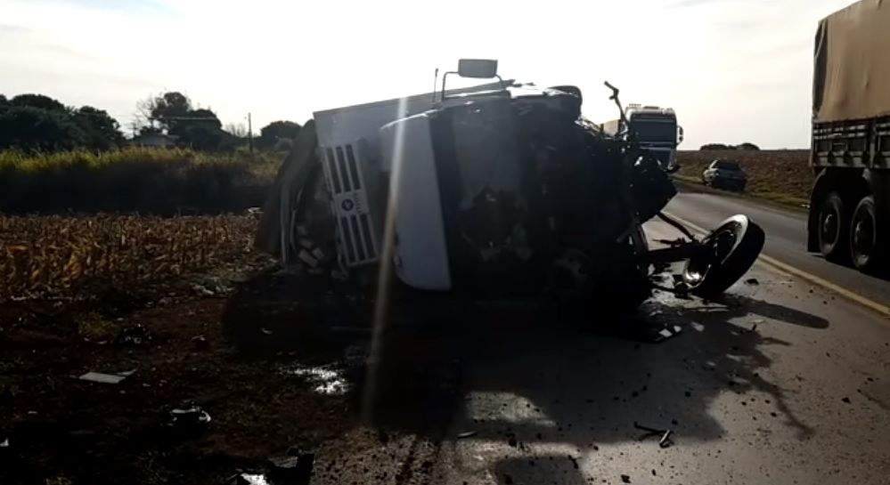 Foi acionado a equipe do SAMU que se deslocou para atendimento porém ao chegar no local apenas confirmaram o óbito do condutor da Kia Cerato. Com a batida o caminhão que estava carregado de queijo acabou tombando.