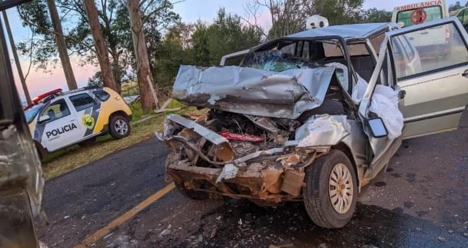 Um gravíssimo acidente foi registrado nesta segunda-feira (05) na PR-364, em Laranjal. A colisão frontal envolveu um Fita Uno e um caminhão de leite.