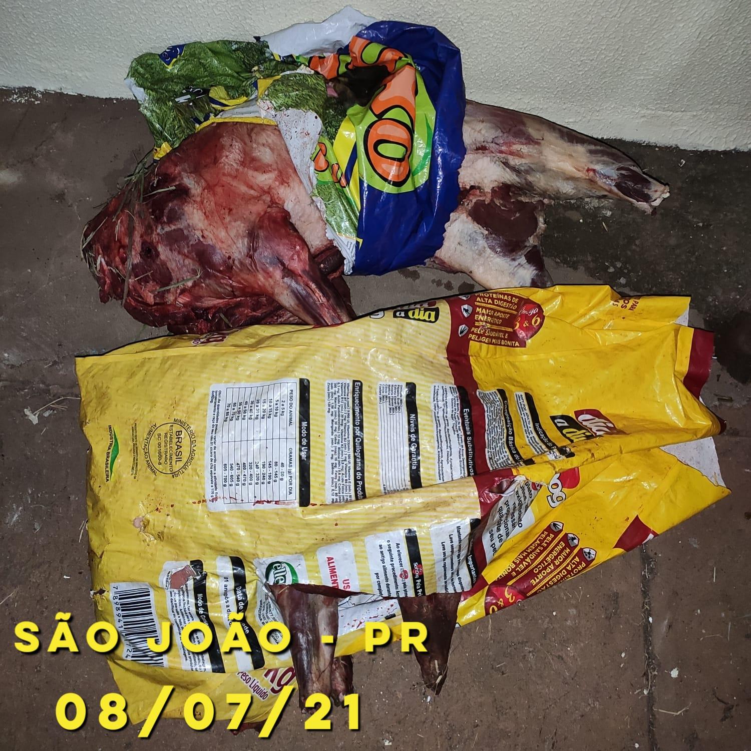 Após certo tempo de fuga o condutor adentrou em estradas rurais, onde não foi possível mais realizar o acompanhamento, pelo fato do risco. Durante o a fuga, o passageiro da camioneta, dispensou algumas bolsas, que após buscas, foram localizado e constatado se tratar de dois animais silvestres, recentemente abatidos em caça ilegal. Os animais serão encaminhados aos órgãos competentes, assim como toda a documentação e provas produzidas, para que sejam tomadas as medidas pertinentes.