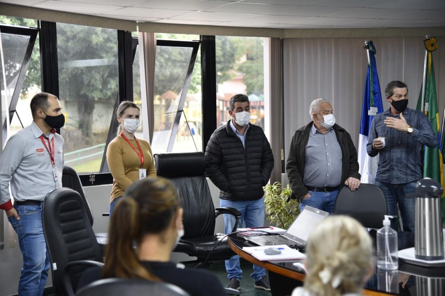 O Governo Municipal segue empenhado na geração de empregos para os Saudadenses. Na manhã de hoje (14), estiveram reunidos no Gabinete, acompanhando o Prefeito Darlei Trento o Vice Prefeito Luiz Giacomini, o Secretario de Industria e Comércio Geisson Padilha, o Secretário de Esporte e Cultura Willian Cemin e o Advogado Municipal Dr. Eberson Moreno , juntamente com representantes e com o proprietário da empresa Doce D’ocê de Chopinzinho Carlos Bazanella, além de representantes de uma cooperativa que será criada no município de Saudade do Iguaçu.