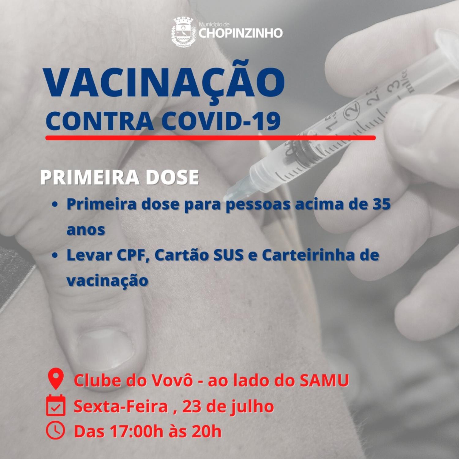 A Secretaria Municipal de Saúde de Chopinzinho realiza no final da tarde desta sexta-feira, dia 23, mais uma etapa da vacinação contra a covid-19.