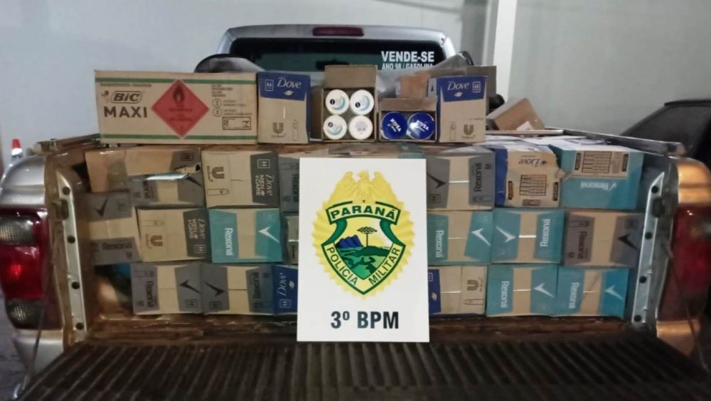 Na mesma data, por volta das 21h20min, em patrulhamento pela PR-562, comunidade de Vista Alegre, cidade de Coronel Vivida, a equipe avistou a caminhonete I/Ford Ranger, conduzida por um indivíduo (52), e localizou na caçamba 145 caixas de desodorante, 30 isqueiros e 30 cremes de beleza.