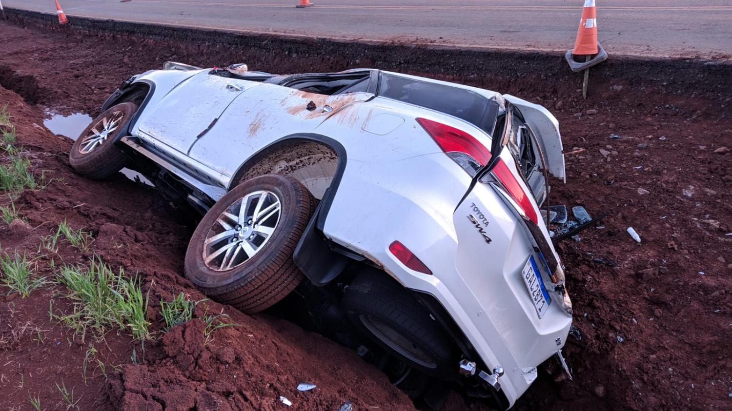 O capotamento envolveu um veículo Toyota/SW4, que era conduzido por uma mulher, a qual ainda não se tem a identificação. O capotamento aconteceu no trecho da PR - 562 que está passando por reformas, próximo a famosa curva do São Brás.