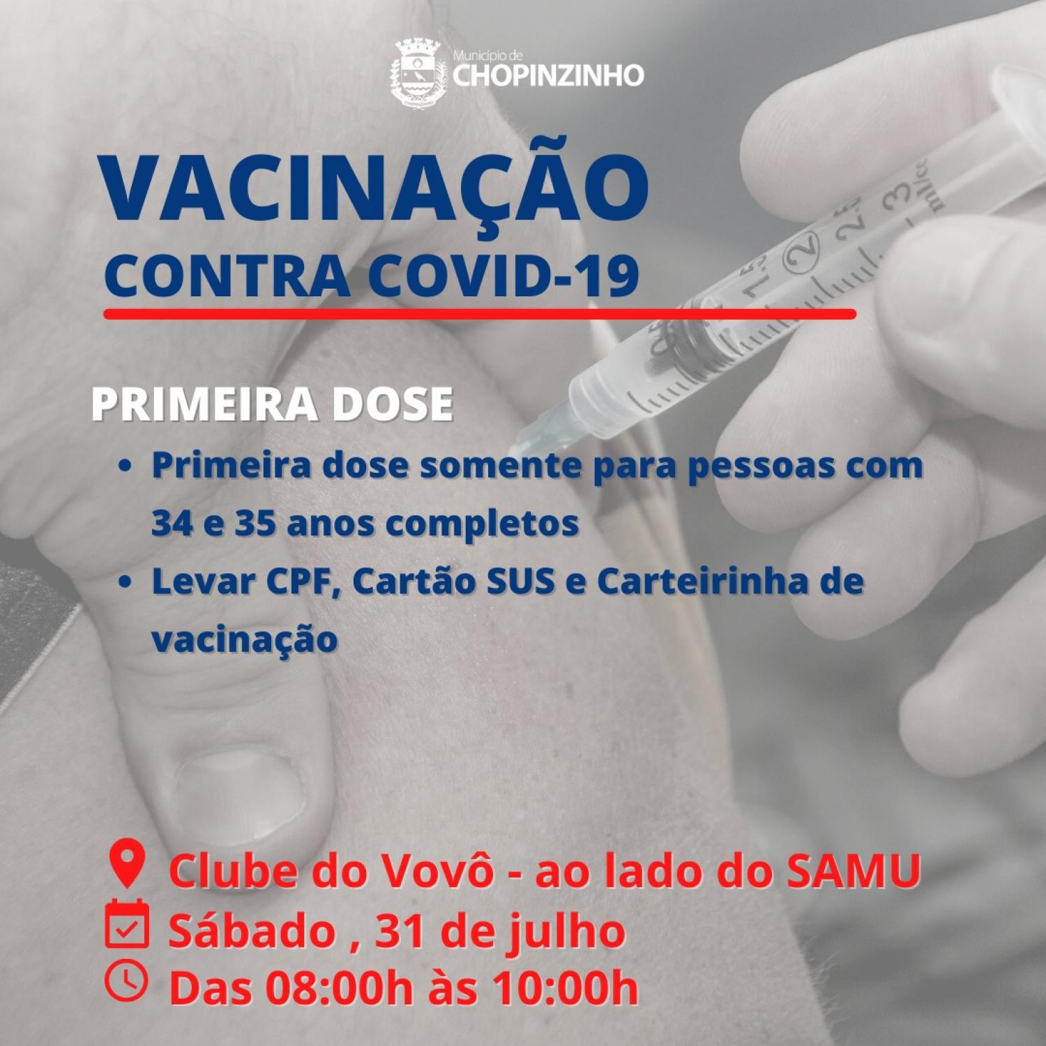 A vacinação contra a covid-19 terá uma nova etapa neste sábado, dia 31, em Chopinzinho.