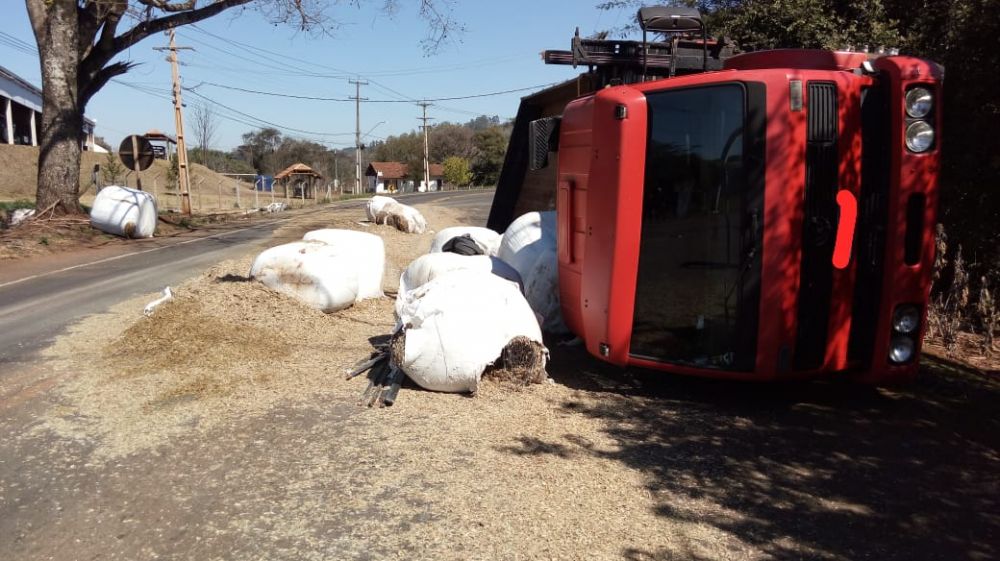 Após a batida o caminhão acabou tombando, fazendo com que a carga se espalhasse na pista e as margens da rodovia. O Volkswagen teve danos consideráveis, já a carreta, aparentemente danos de pequena monta.
