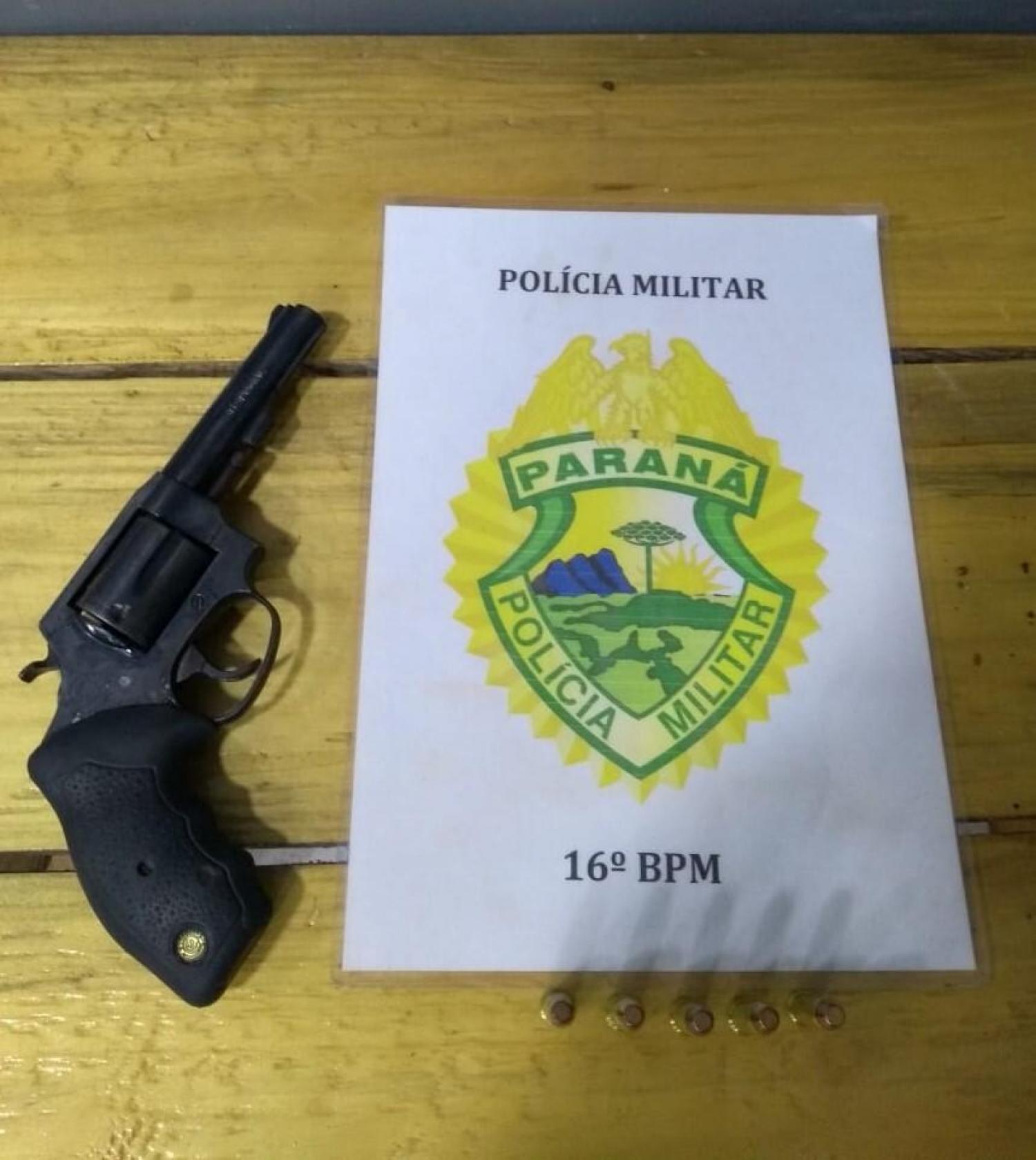 Durante a revista no veículo, foi encontrado no banco do motorista um revólver cal.38 special taurus, com 05 munições intactas, sendo que o motorista assumiu ser o proprietário do revólver.