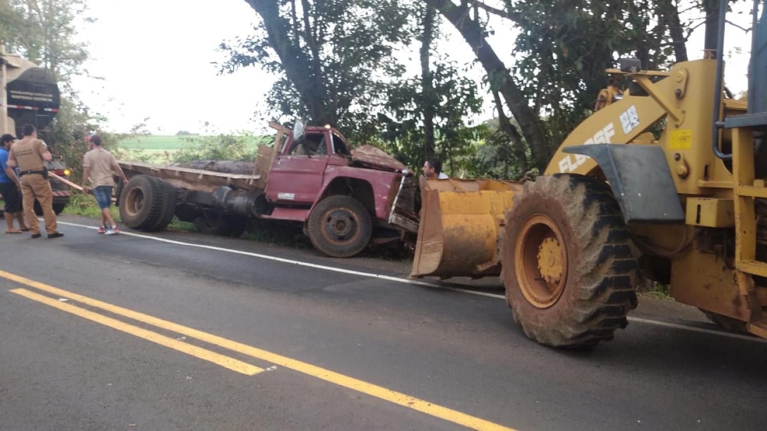 O caminhão apresentou danos de grande monta e a carga de toras ficou “jogada” na lateral da pista. As causas do acidente serão investigadas. A pista ficou bloqueada nos dois sentidos e formou uma fila de veículos de ambos os lados. Um pá carregadeira e um outro caminhão auxiliaram no deslocamento do veículo para ser possível o resgate do motorista.