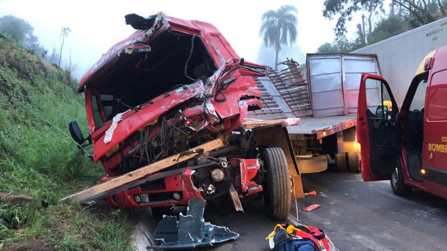 Um caminhão de Ponta Grossa, conduzido por Felipe de Oliveira, carregado com farinha tombou na curva, sendo que a carga caiu em cima de um veículo Fiat/Uno Mille, placas de Pato Branco, o qual ficou soterrado e o condutor Adenilson Ramos da Maia entrou em óbito no local.