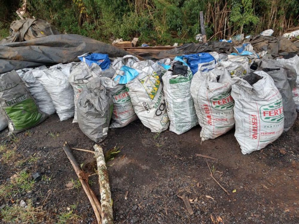 64 sacos de carvão in natura;