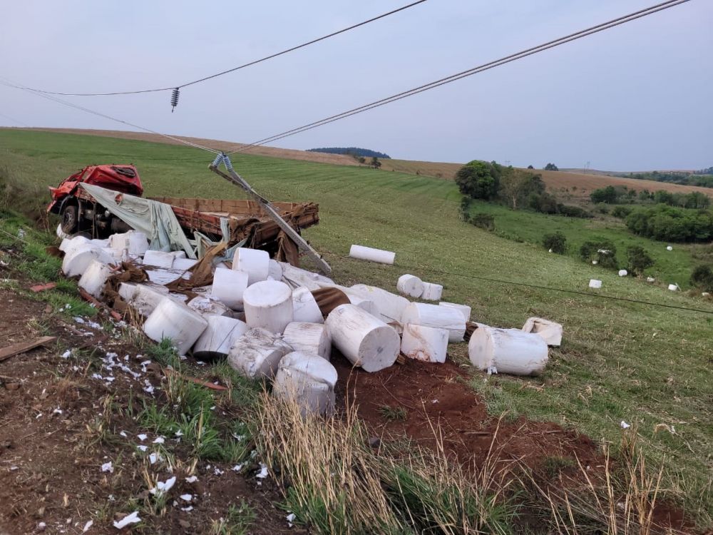 Um grave acidente do tipo tombamento de caminhão foi registrado no final da tarde desta segunda feira, dia 13, na PR 153, comunidade de São Cristóvão, Saudade do Iguaçu.