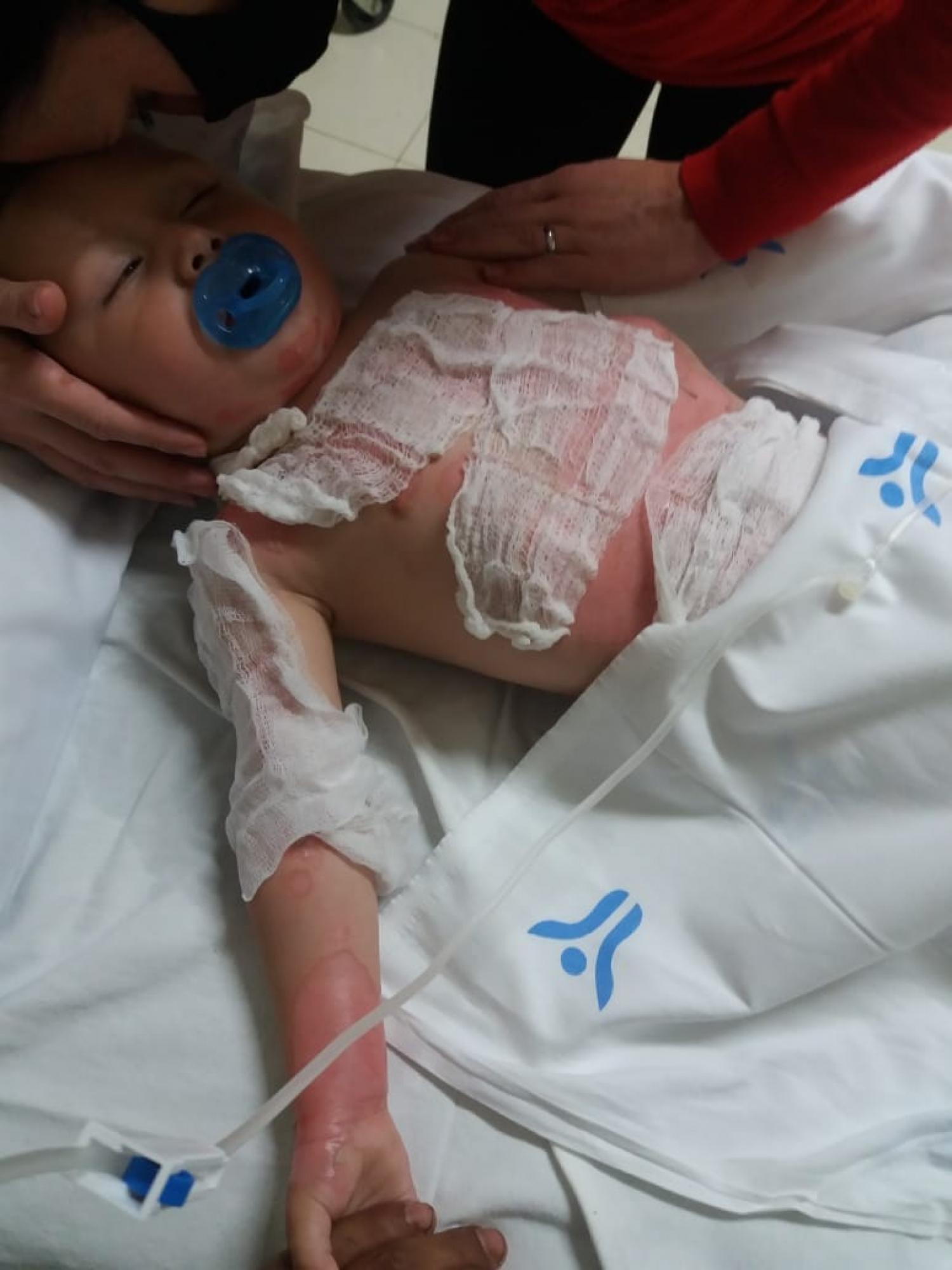 O bebê foi encaminhado às pressas para o hospital São Lucas de Pato Branco, onde está sedado na UTI, aguardando vaga para ser encaminhado para um hospital especializado em queimaduras na capital.