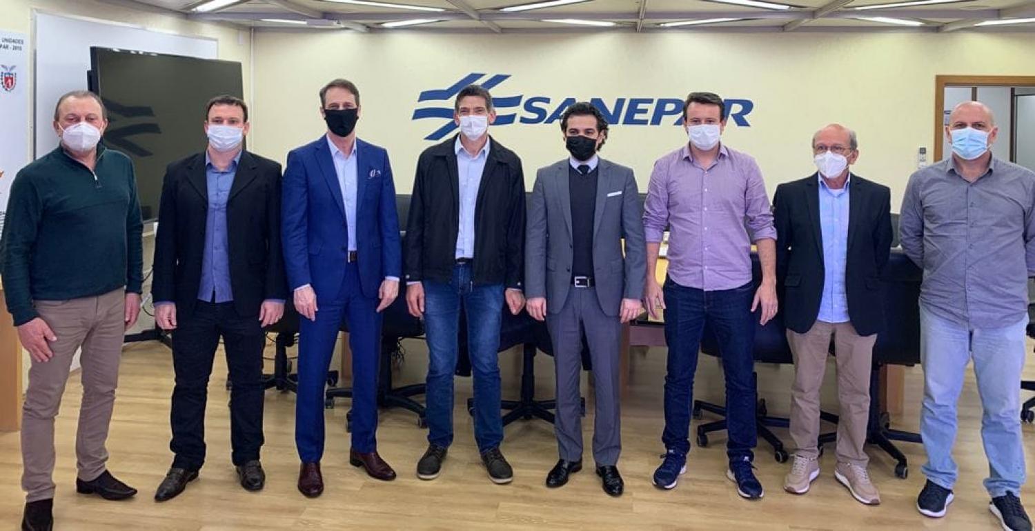 O prefeito de Chopinzinho Edson Luiz Cenci (Neco), na companhia do vice prefeito Daniel Zanesco, do chefe da Divisão de Planejamento e Projetos Jovani Martins, bem como dos vereadores Osmar Checchi e Saimon Miri, se reuniram com o presidente da SANEPAR, Claudio Stabile, o Diretor Comercial, Toco Zanetti, o chefe de gabinete da presidência, Fabrício Haesbaert.