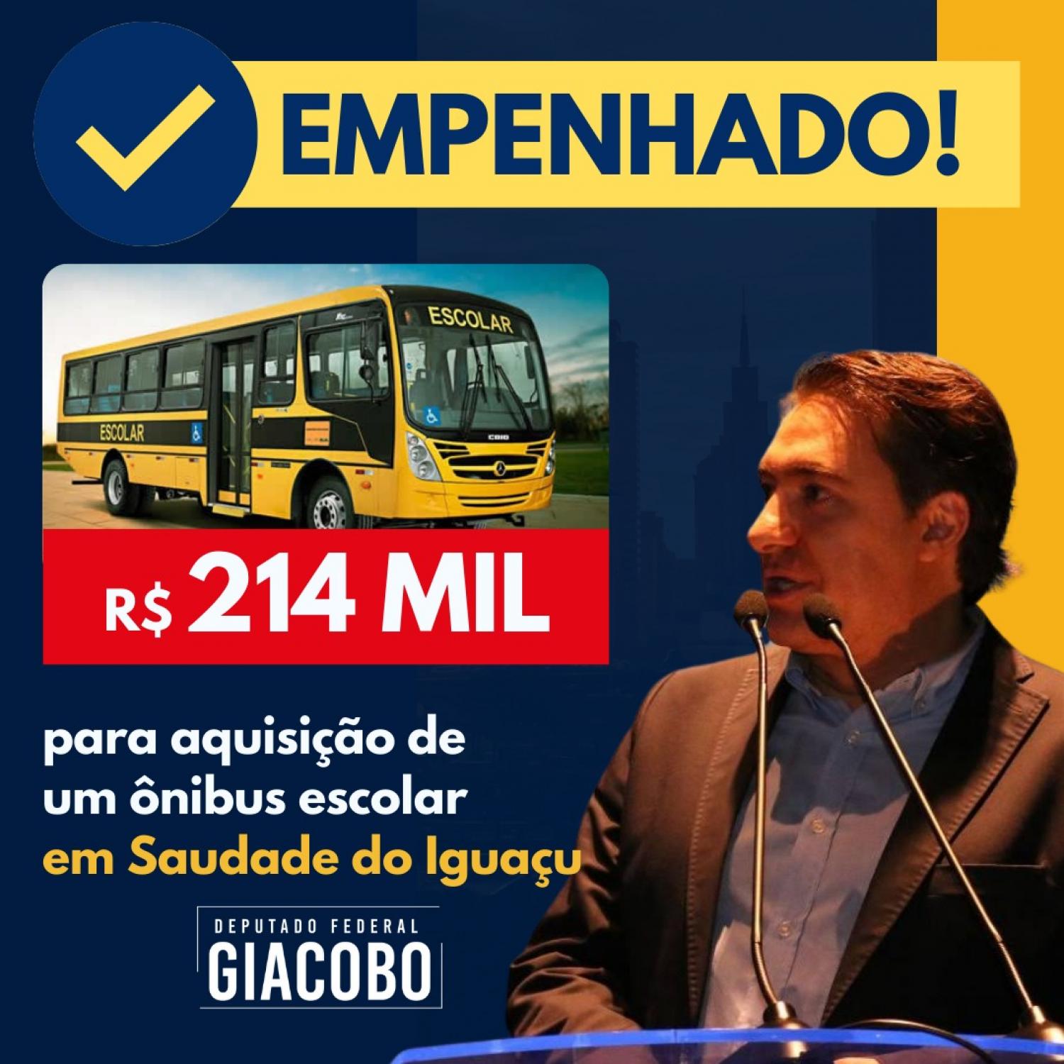 De acordo com o prefeito Darlei Trento, o deputado federal Fernando Giacobo confirmou o empenho de recurso na ordem de R$ 214 mil reais para a aquisição de um ônibus escolar novo para o município.