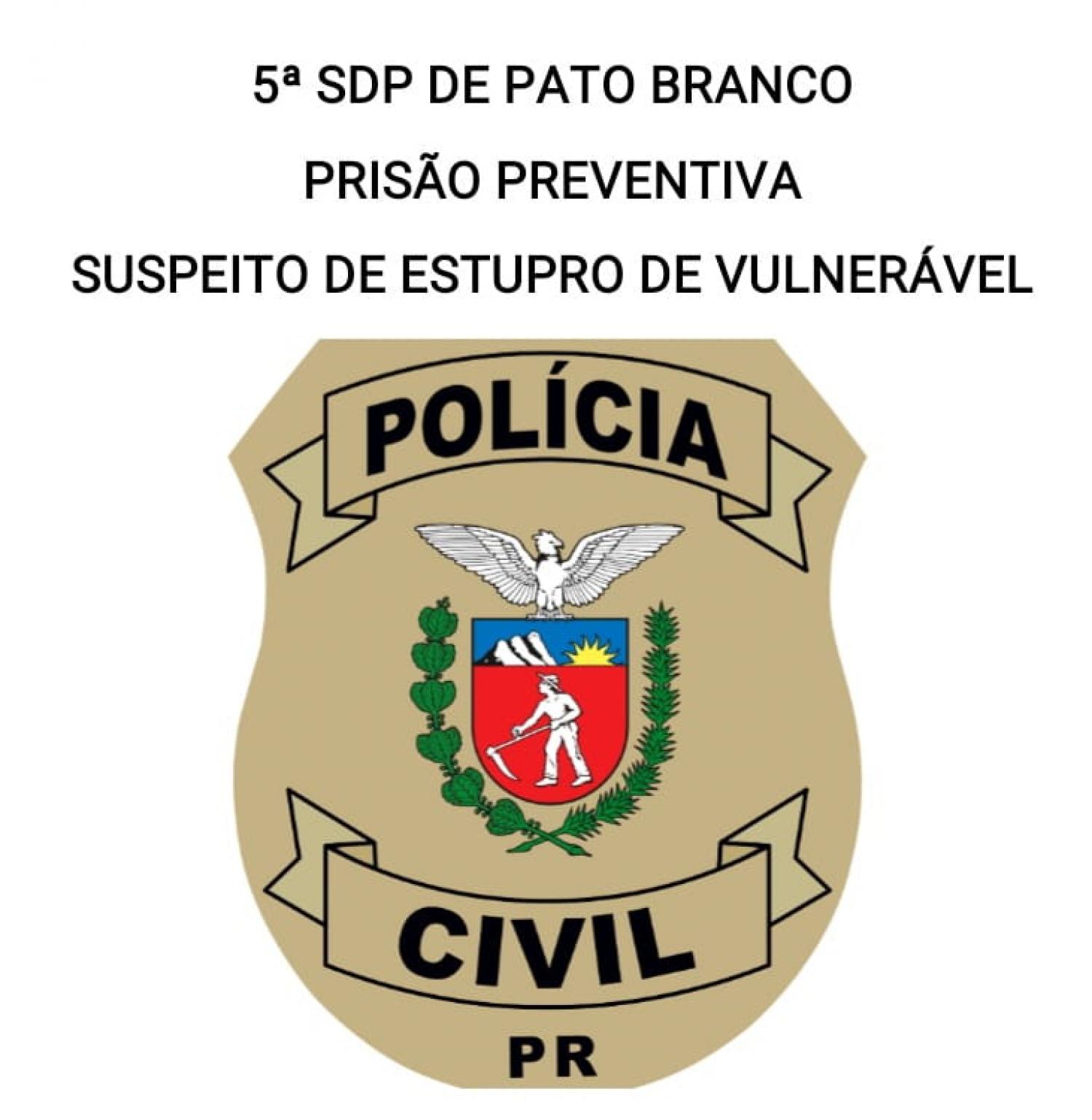 A Polícia Civil de Pato Branco realizou no sábado, dia 13, a prisão preventiva de um indivíduo de 42 anos, após investigações sobre um crime de estupro de vulnerável ocorrido no Município.