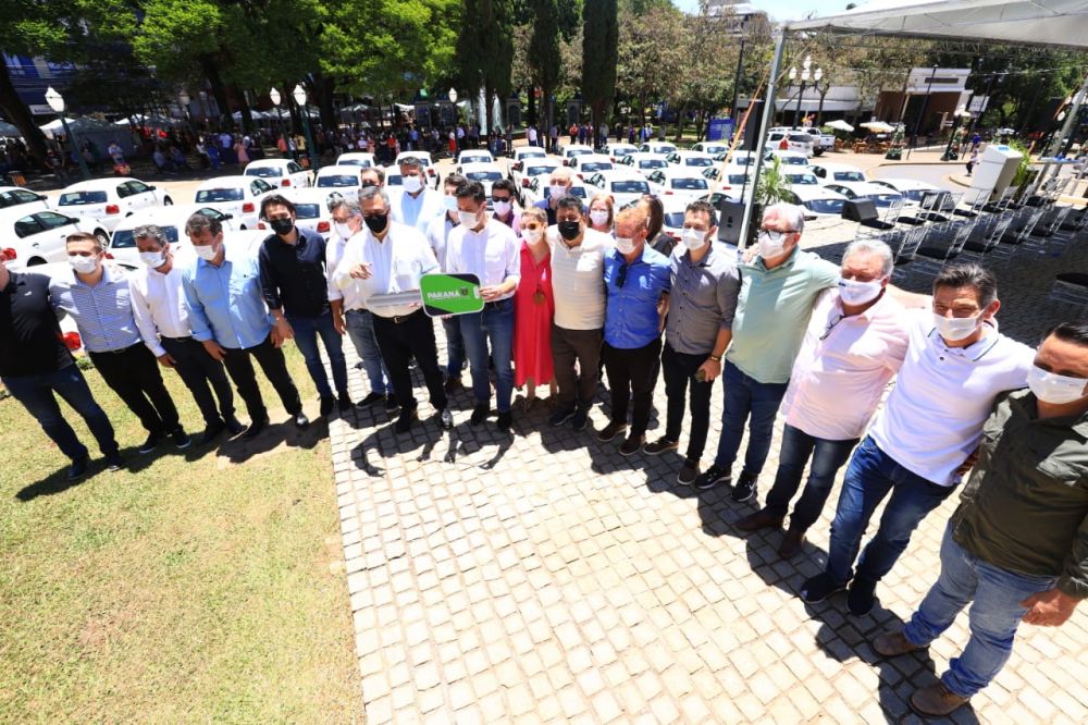 Na ocasião, os representantes de Chopinzinho receberam as chaves dos veículos das mãos do chefe da casa civil, Guto Silva.