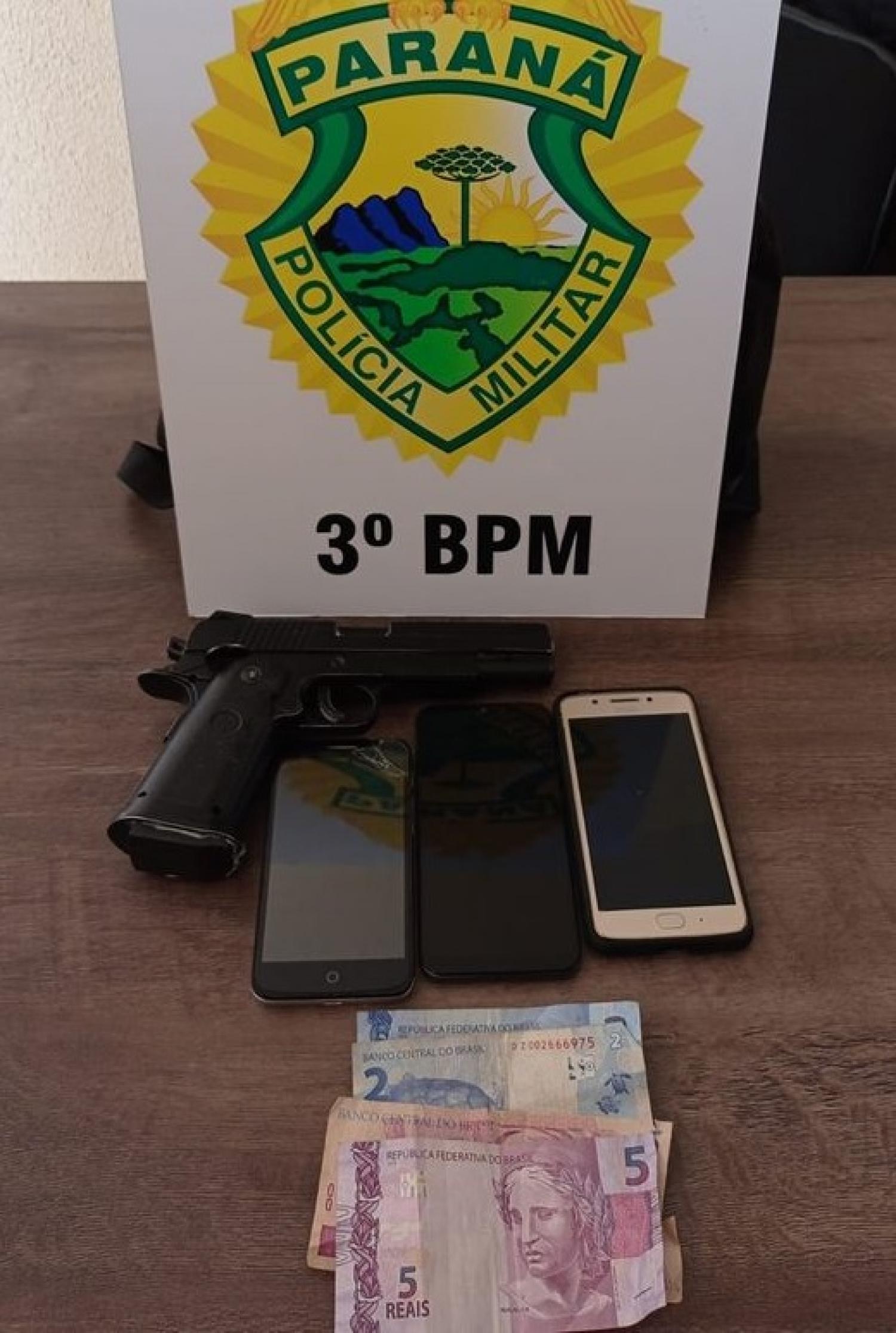 Com o indivíduo foi localizado uma mochila com um simulacro de pistola, várias peças de roupas e três celulares.