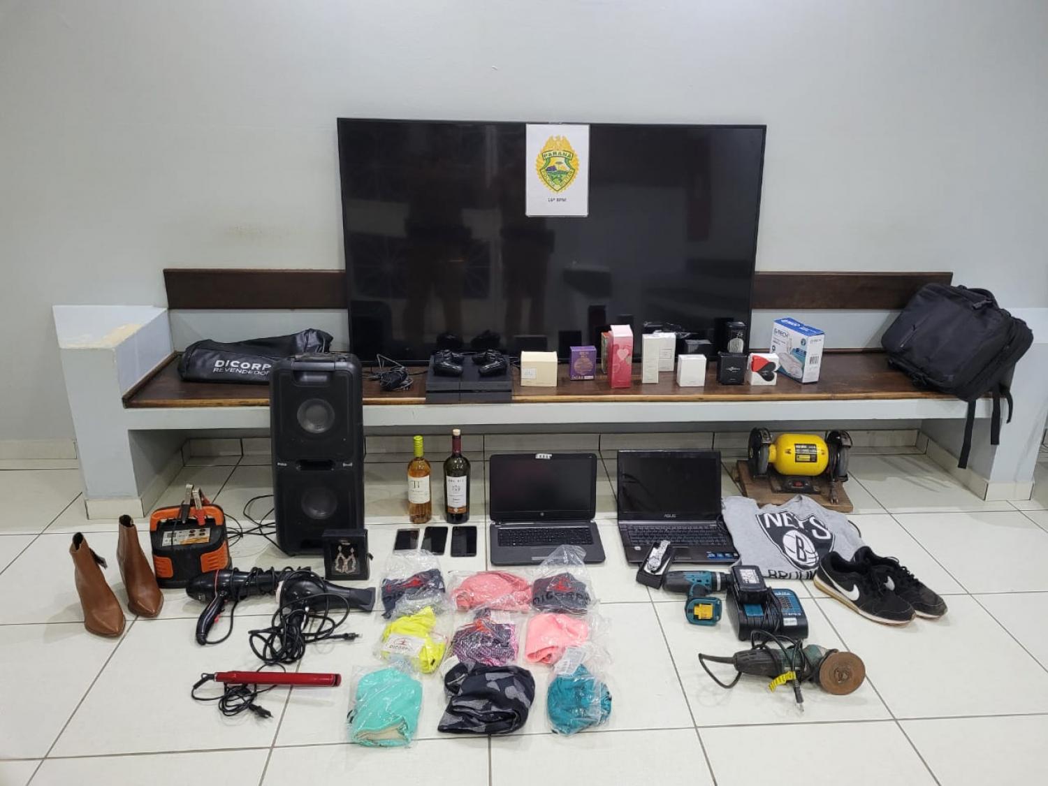 Os policiais deslocaram até a segunda residência, onde foi encontrado diversos produtos de origem duvidosa. Também na casa os policiais encontraram o mesmo tênis e camiseta que o homem de 43 anos utilizou durante um dos furtos gravado pelas câmeras de segurança na cidade de Ivaí e também imagens de câmeras de segurança em Saudade do Iguaçu.