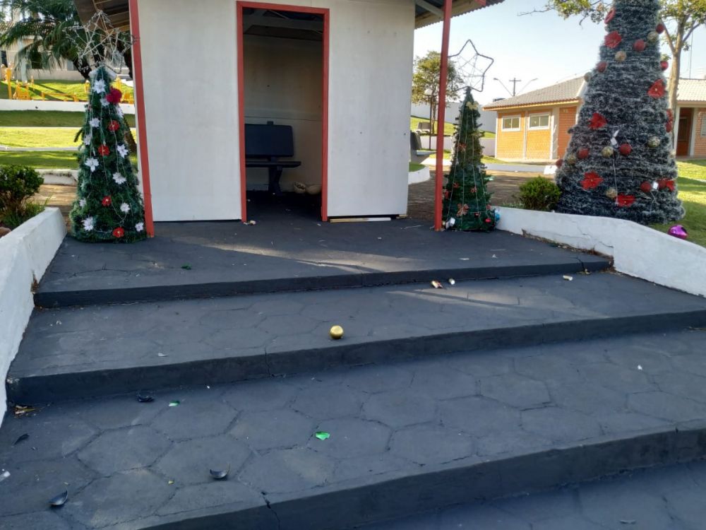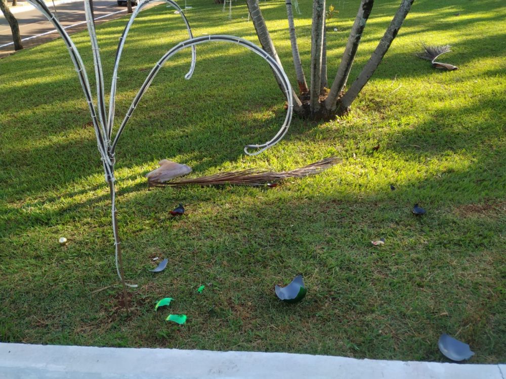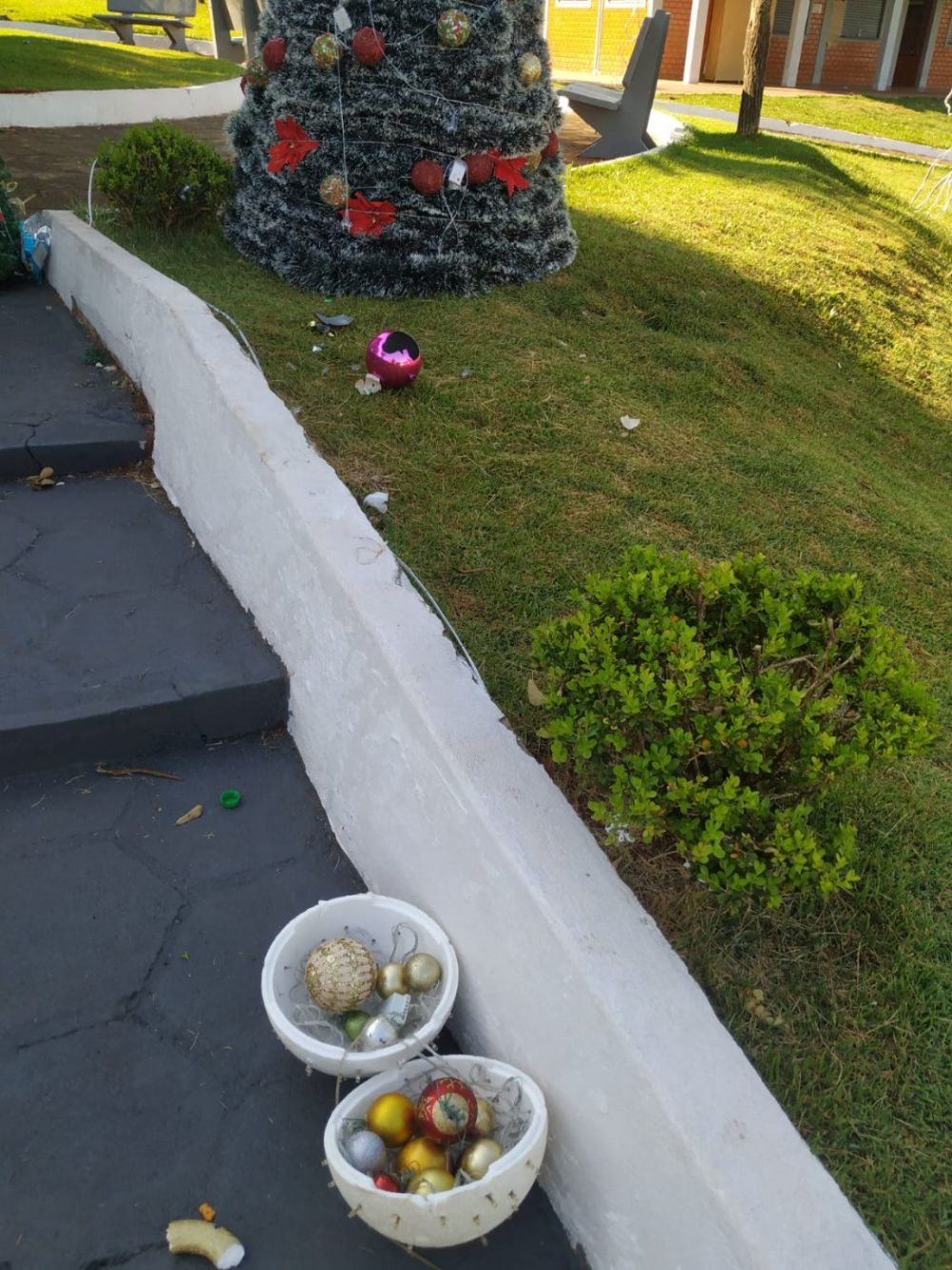 Neste final de semana a ação de vândalos causou danos aos arranjos de natal que estão sendo colocados na área central de Rio Bonito do Iguaçu. A decoração nem está concluída e marginais já causaram danos em parte do que foi instalado.