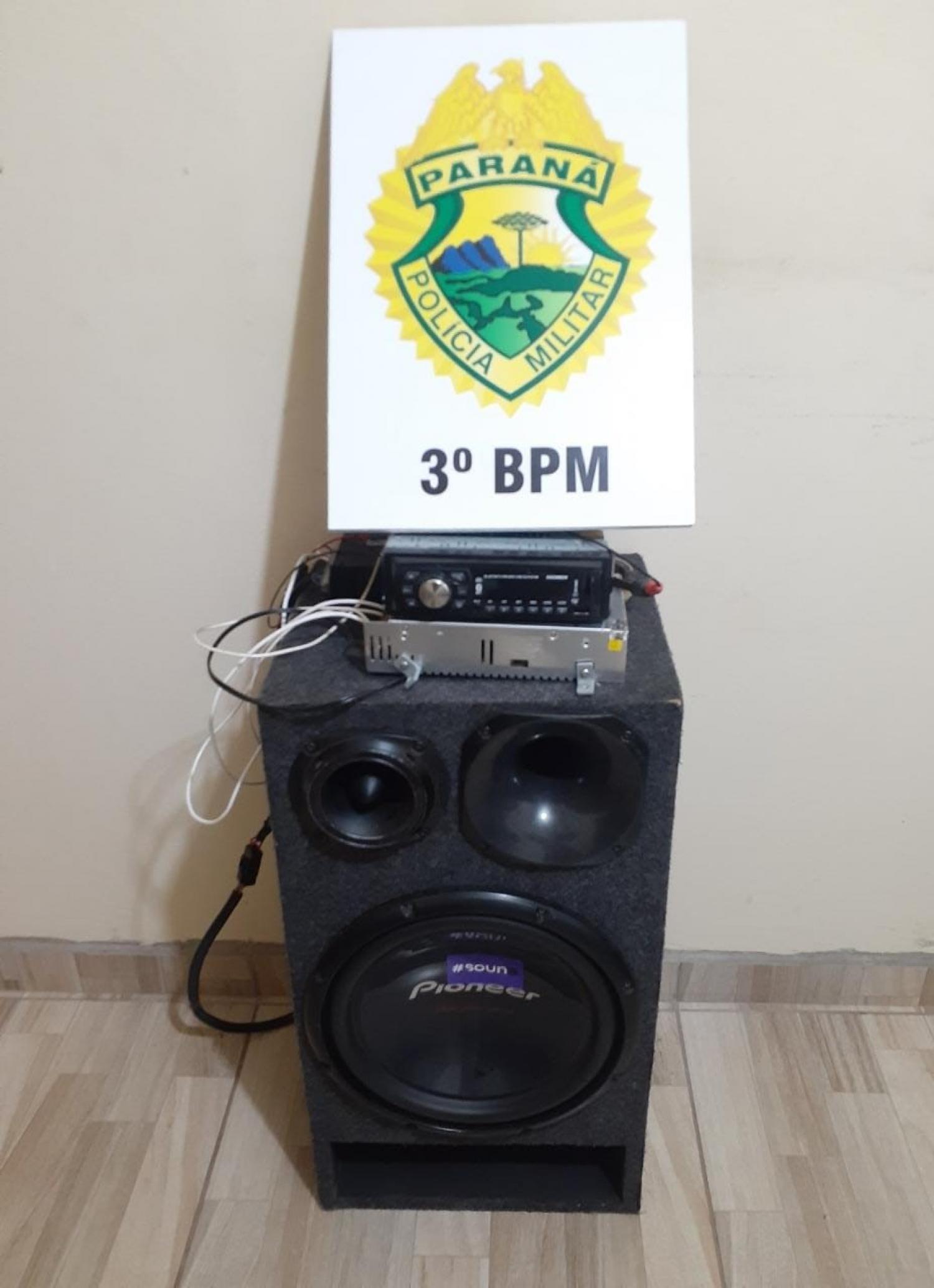 No local, os policiais encontraram um jovem de 26 anos, o qual teve som apreendido por perturbação do sossego e foi conduzido até o Destacamento da Polícia Militar para termo circunstanciado.