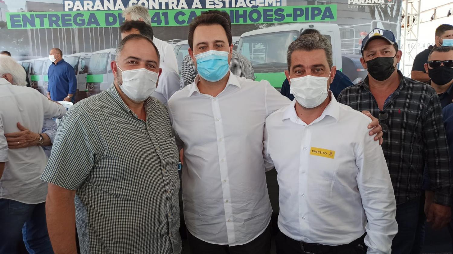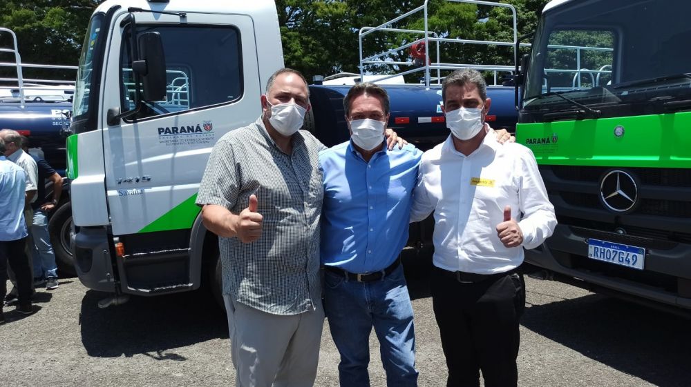 Em solenidade realizada na manhã desta terça feira, dia 21, na Academia Policial Militar do Guatupê, em São José dos Pinhais, o prefeito de Saudade do Iguaçu, Darlei Trento, recebeu do governo do estado um caminhão-pipa adaptado para ser utilizado em várias situações. O equipamento têm valor estimado em aproximadamente 500 mil reais.