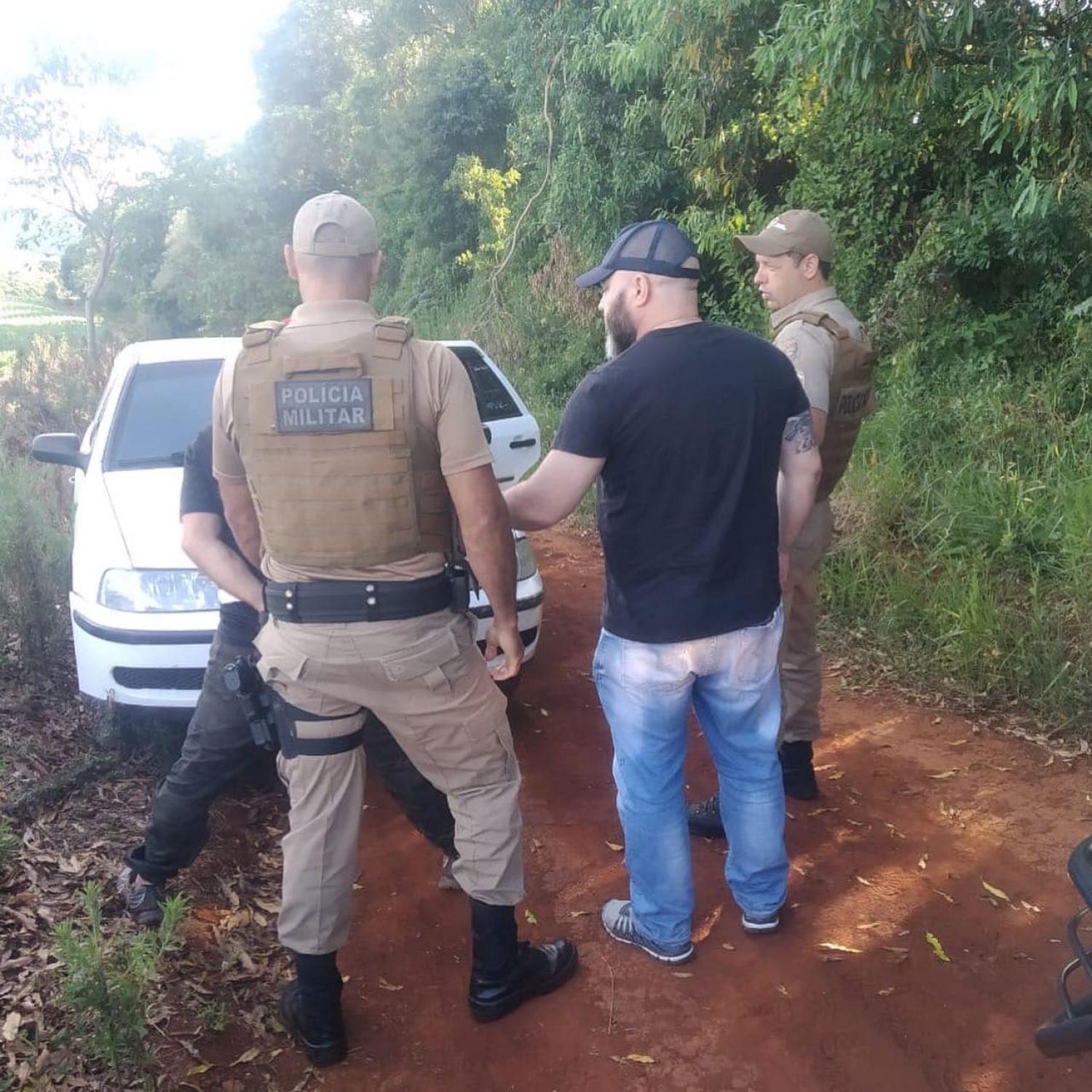 Após crime de feminicídio ocorrido na data de ontem (20/12), no bairro Gomes, município de Mangueirinha-PR, em que uma mulher (30) teria sido morta por arma branca por um indivíduo (47), que posteriormente evadiu-se do local levando consigo a filha da vítima em um veículo VW/Gol, policiais militares da Agência Local de Inteligência do 3º BPM realizaram o levantamento de informações acerca do crime, e chegaram ao conhecimento de que o suspeito estaria na região de fronteira do Paraná com Santa Catarina.
