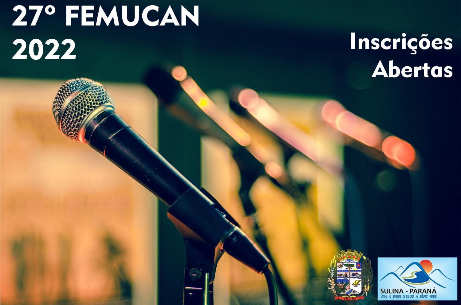 A Secretaria de Educação, Cultura e Esportes do município de Sulina, informa a população Sulinense que houve alteração nas inscrições do 27º FEMUCAN – Festival Municipal da Canção, em janeiro de 2022.