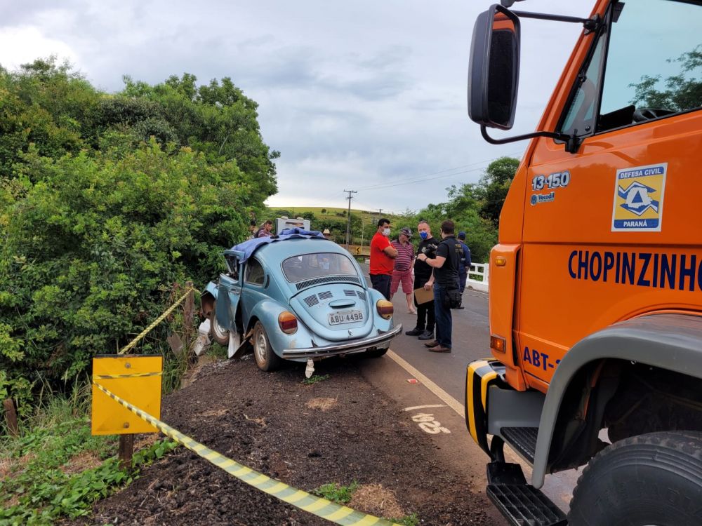 José Cláudio Rodrigues, 50 anos, conhecido por Zezinho, morador na comunidade do Alto Bugrinho, interior de Chopinzinho, era o condutor do fusca placas ABU-4498 de Chopinzinho, o qual saiu da rodovia e bateu contra a proteção da cabeceira da ponte.