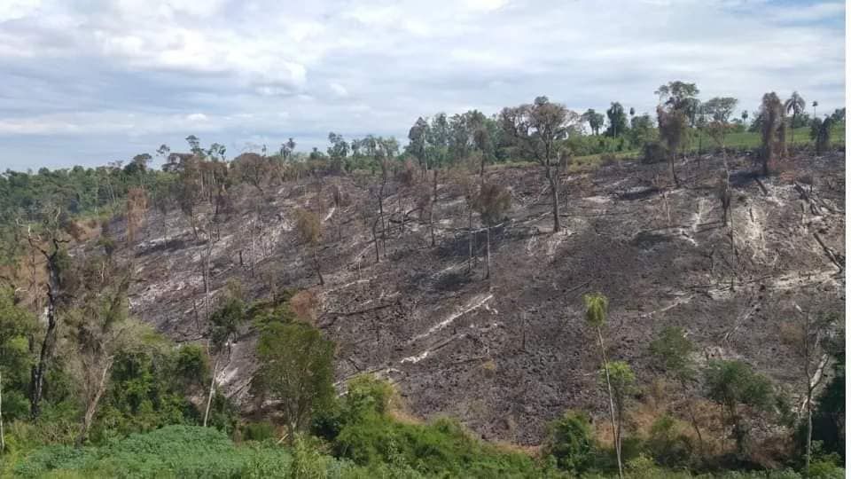 Nesta quarta-feira (19) durante atendimento a denúncia, policiais do Batalhão Ambiental constataram o crime a destruição de 5,15 hectares de floresta de área de preservação permanente.