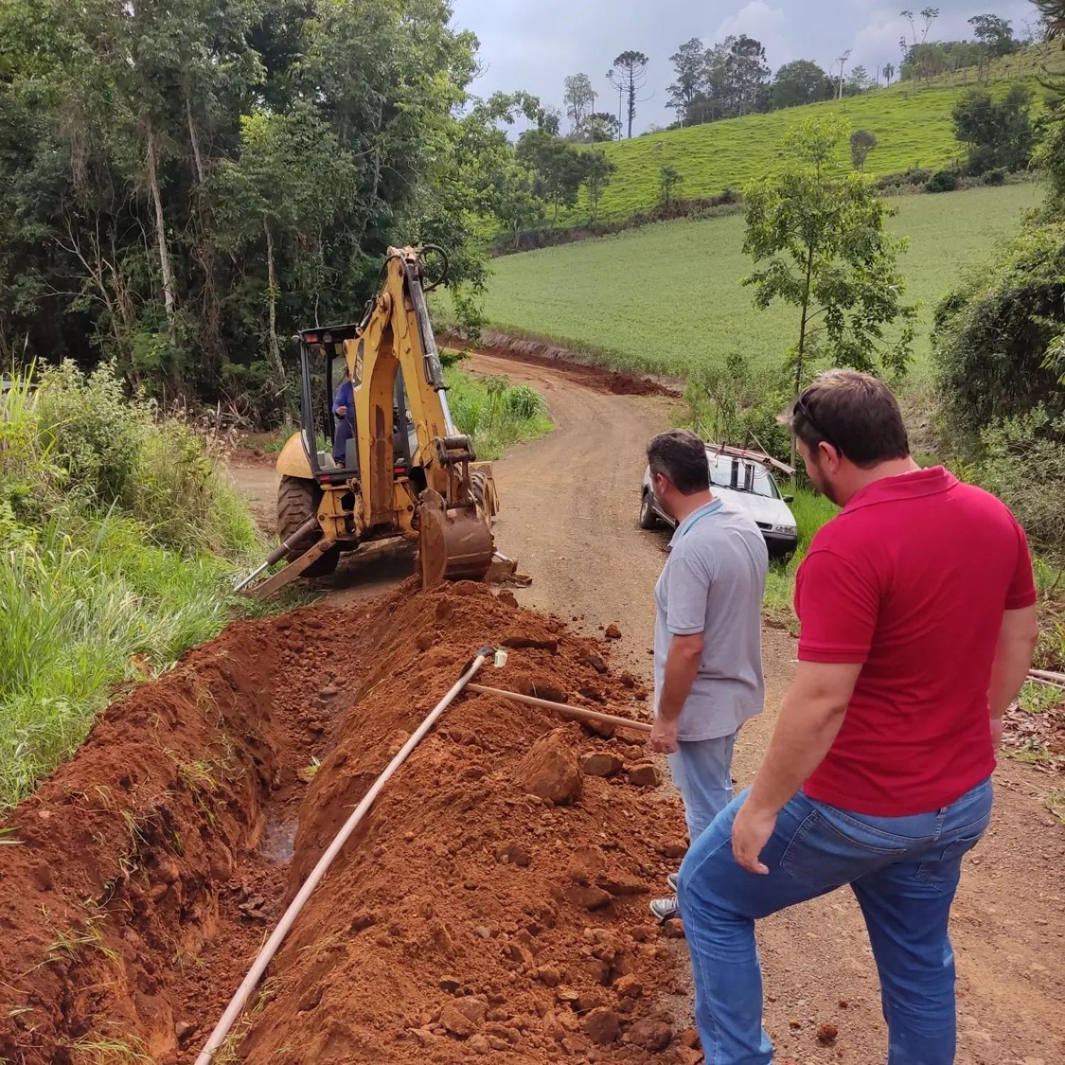 Nesta semana a empresa responsável pelas obras de implantação do encanamento do projeto de distribuição de água do poço artesiano nas comunidades de Linha Biguá e Linha Pães, interior de Saudade do Iguaçu, iniciou os trabalhos.
