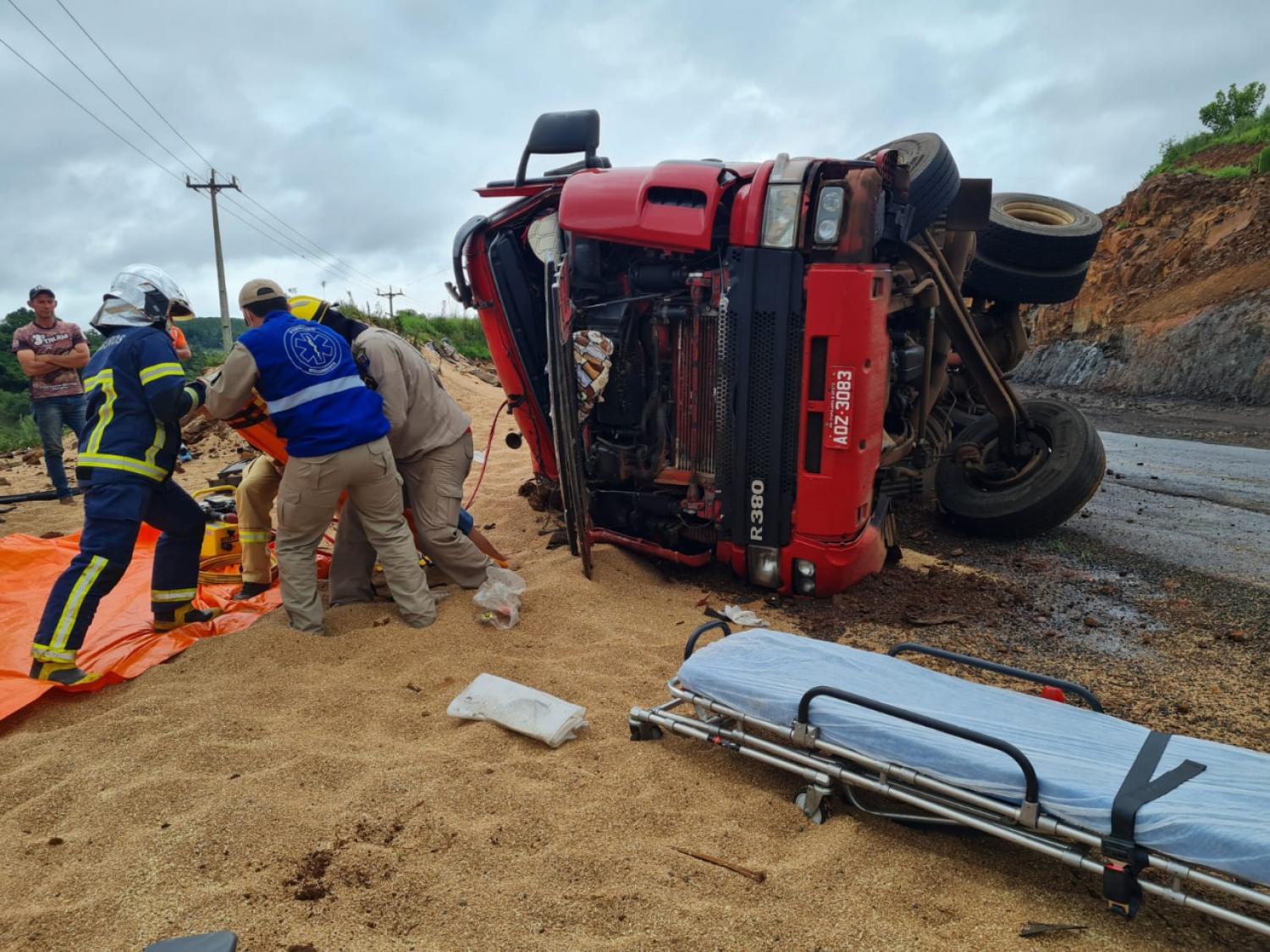 No acidente, envolveu uma carreta Scania 124, placas de Itapejara D’oeste, carregada com trigo.