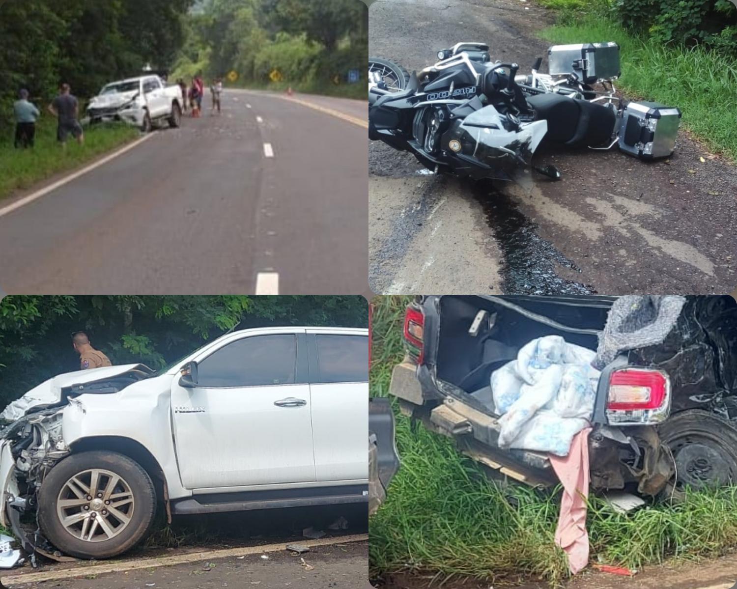 No local houve um grave acidente, envolvendo um veículo a Renault Logan, uma camionete Toyota Hillux e uma motocicleta BMW.