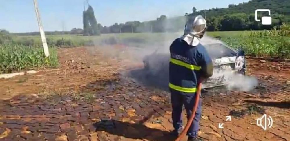 A Brigada Comunitária foi acionada para fazer o rescaldo de veículo, identificado como um Kadett, possivelmente o mesmo usado no assalto a lotérica.