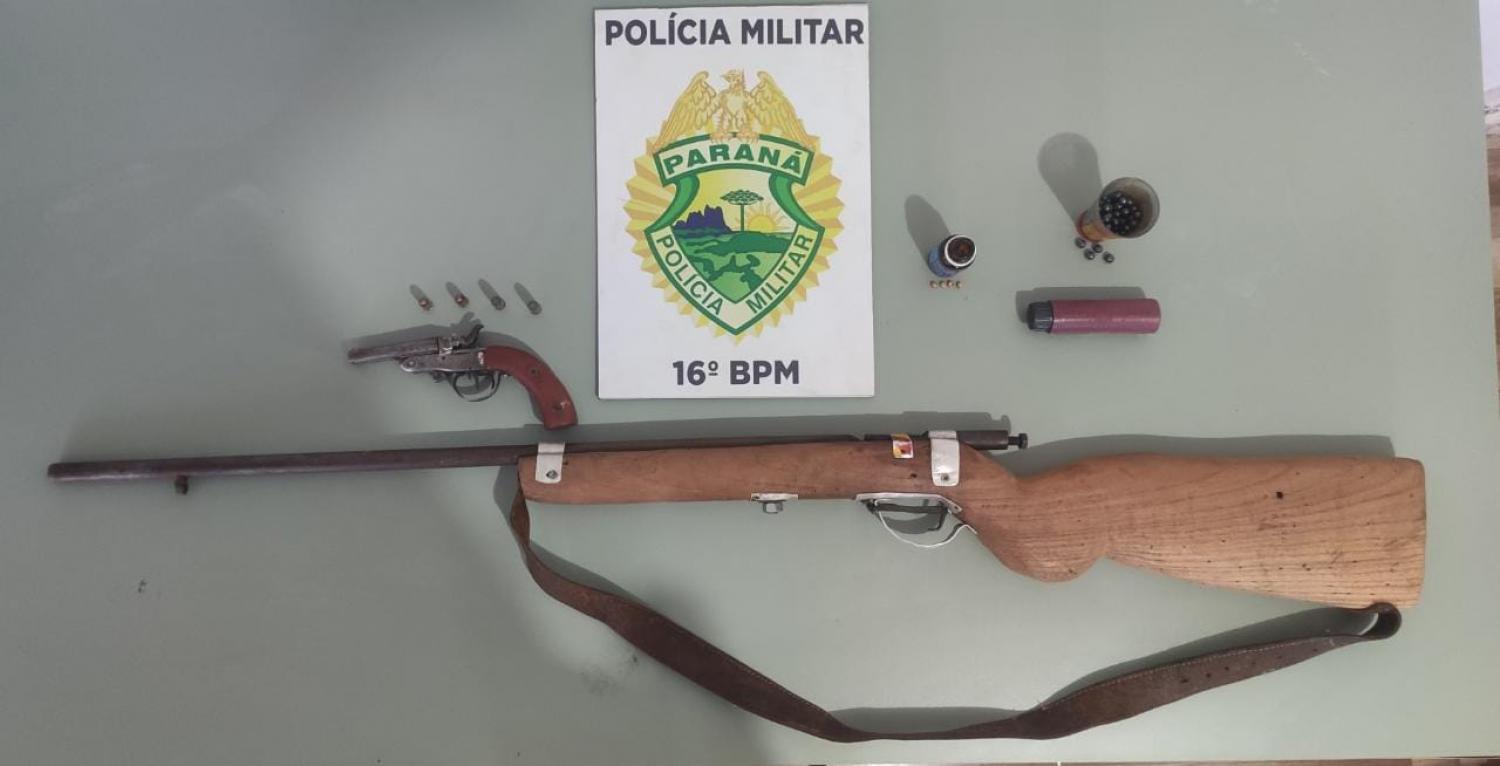 Também foram apreendidas quatro munições calibre 32, bem como recipientes com pólvora, chumbo e espoletas. A ocorrência foi encaminhada à Polícia Civil de Guarapuava.