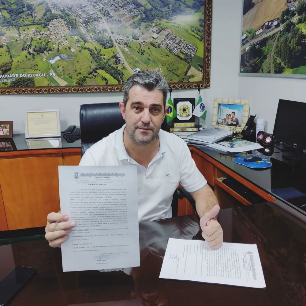 Foi assinada na tarde de hoje (15) pelo prefeito Darlei Trento, a ordem de serviço para o início da construção do “Centro de Treinamento Desportivo de Saudade do Iguaçu”. O prédio será construído ao lado da construção do Centro Cultural que está em andamento no “Parque do Lago”.