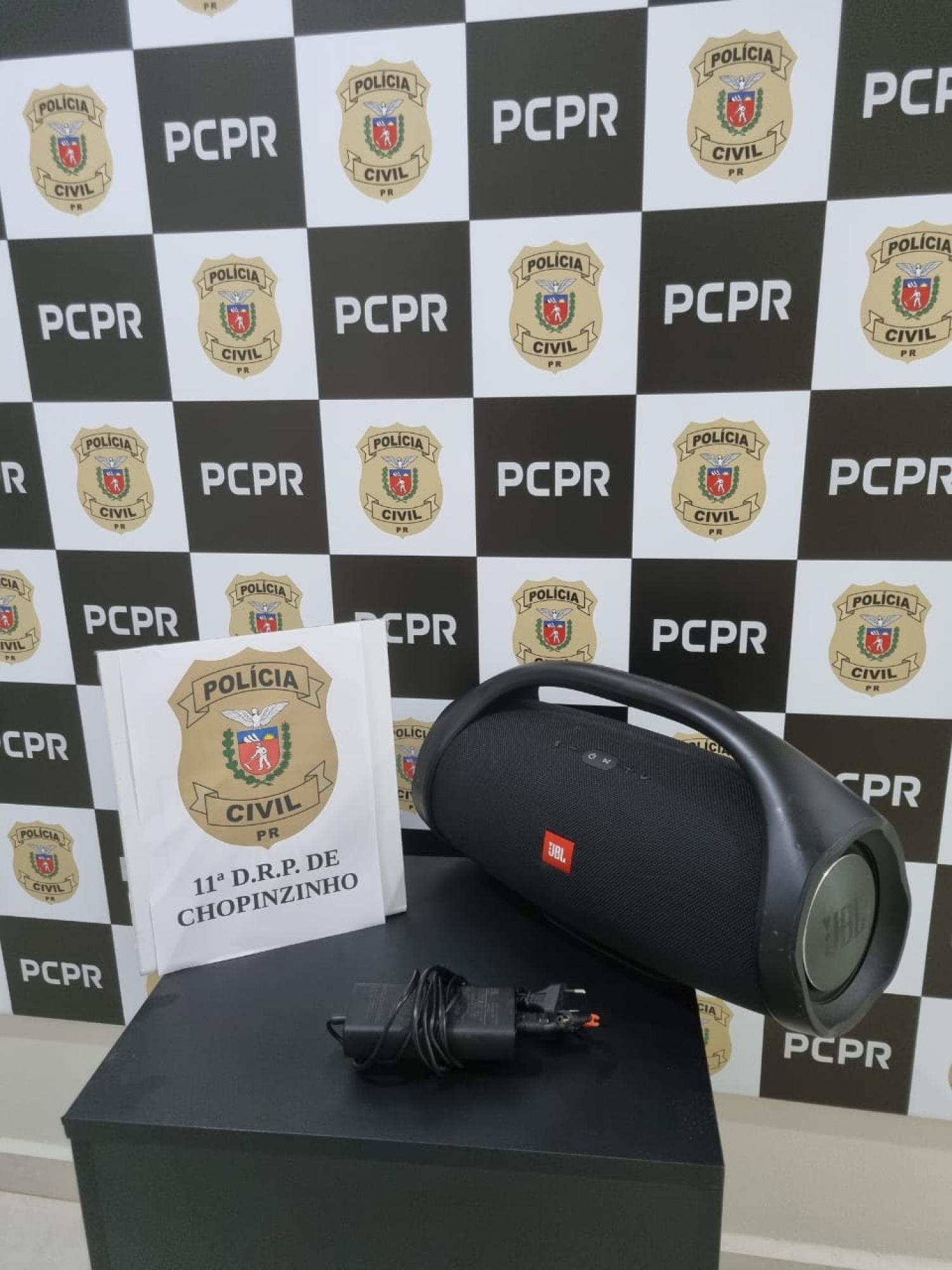 Em um dos inquéritos instaurados verificou-se que um veículo automotor teria dado suporte no ato criminoso que subtraiu uma caixa de som JBL avaliada em R$ 2.850.00.