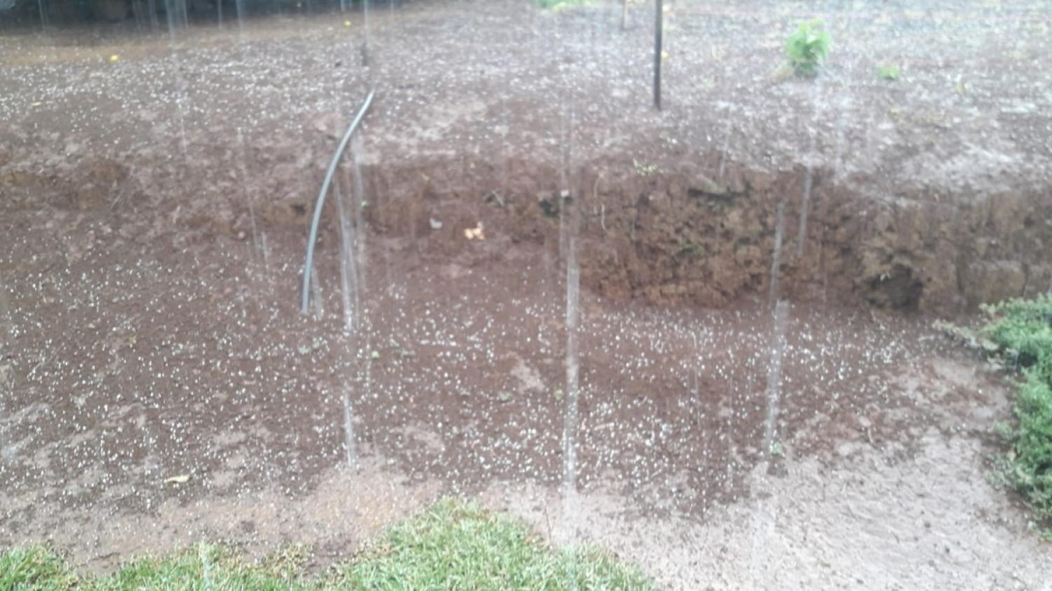 Devido à intensidade, o granizo ficou acumulado no solo por alguns minutos.
