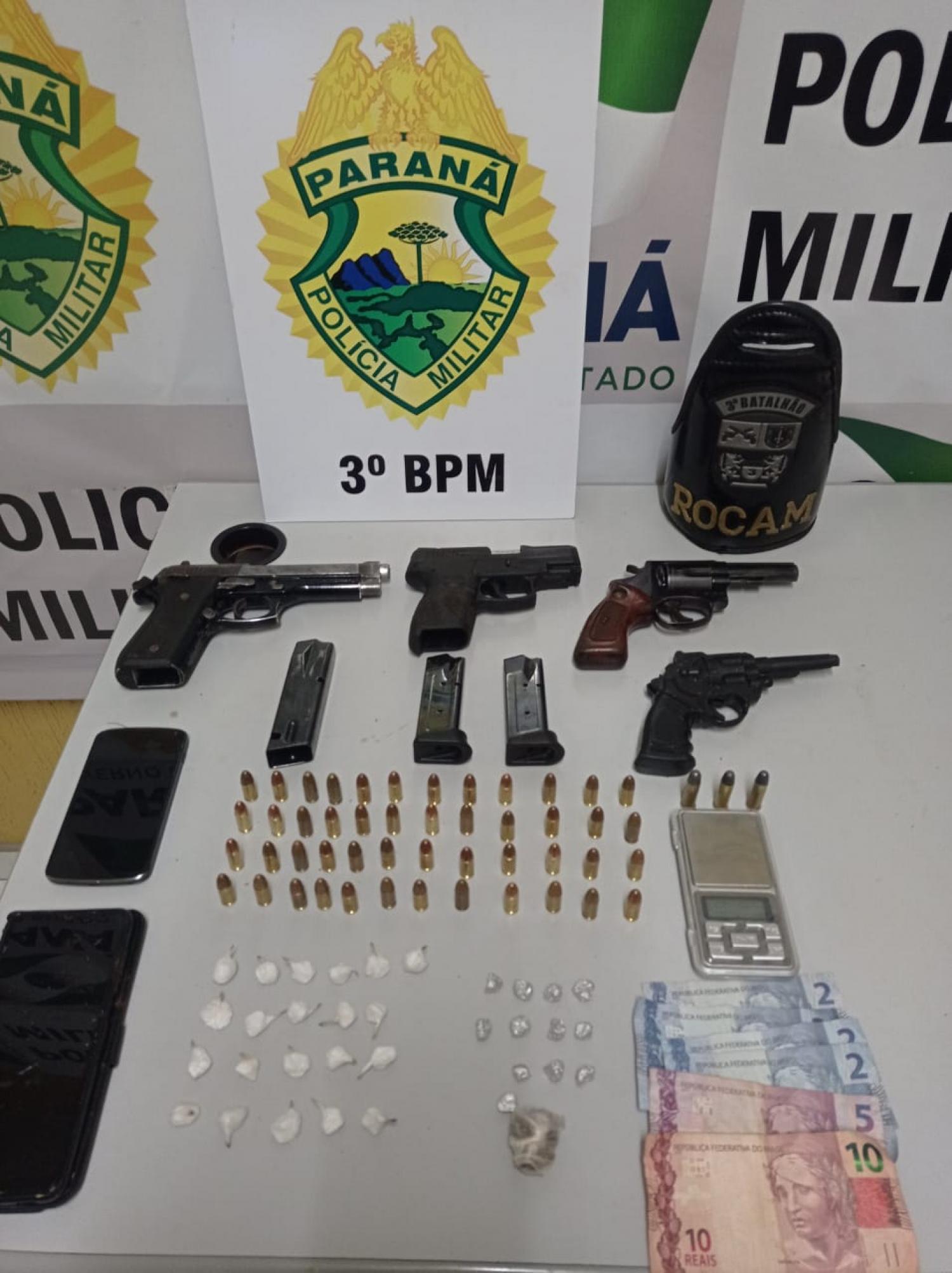 No total foram apreendidas 48 munições de 9mm e uma bucha de substância análoga a maconha. Diante dos fatos os detidos foram encaminhados juntamente com os objetos apreendidos até o 3º Pelotão para confecção do boletim de ocorrência, e posteriormente para a Delegacia de Polícia Civil de Pato Branco.
