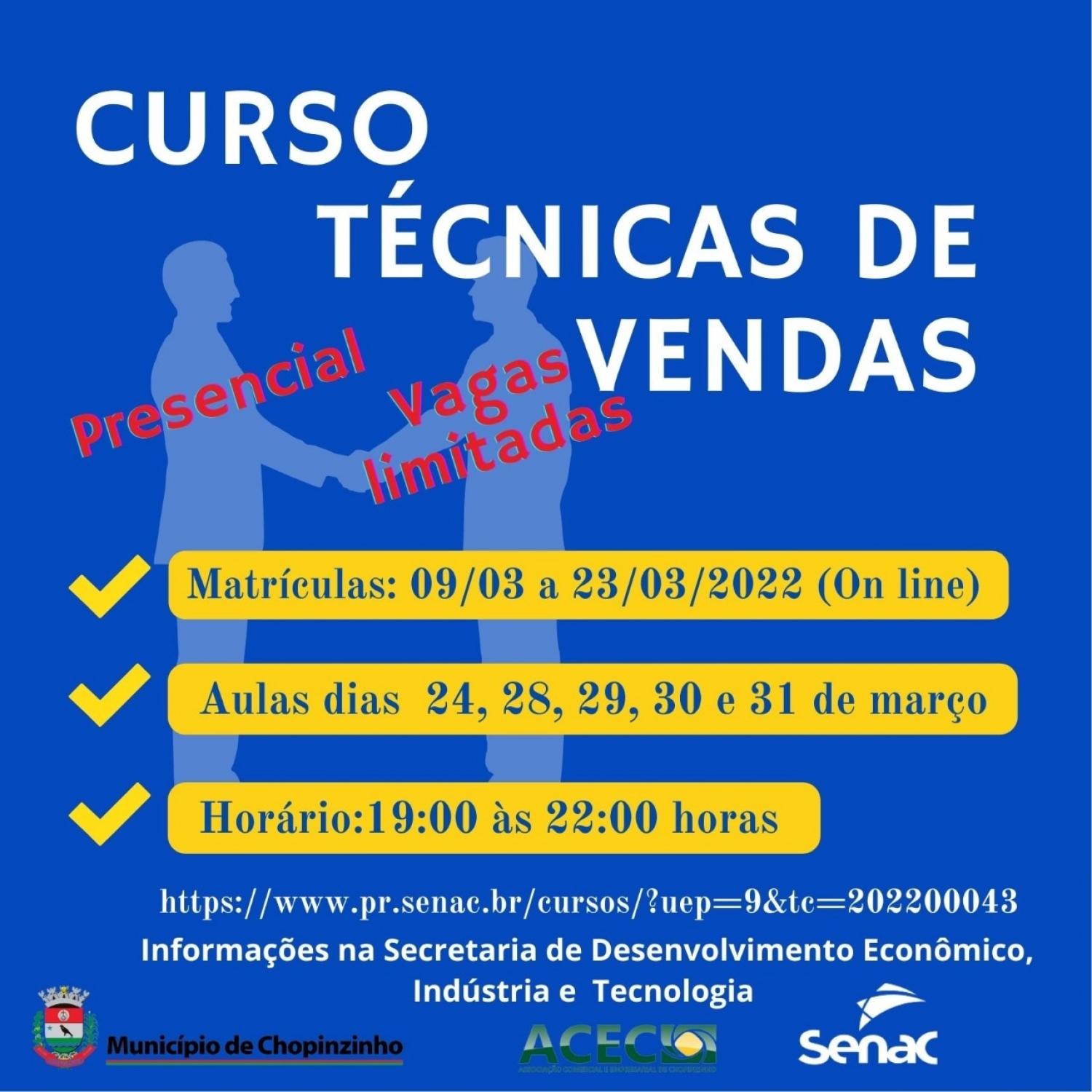 CURSO DE TÉCNICAS DE VENDAS EM CHOPINZINHO