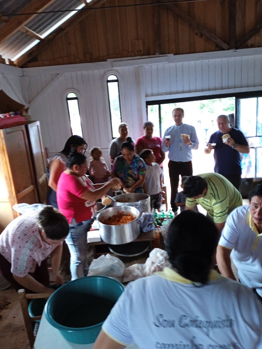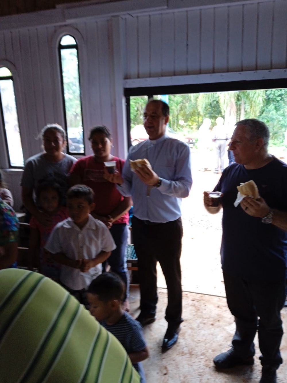 Após a celebração e benção da nova igreja, a comunidade ofereceu um delicioso lanche e refrigerantes aos presentes como forma de agradecimento e confraternização entre todos.