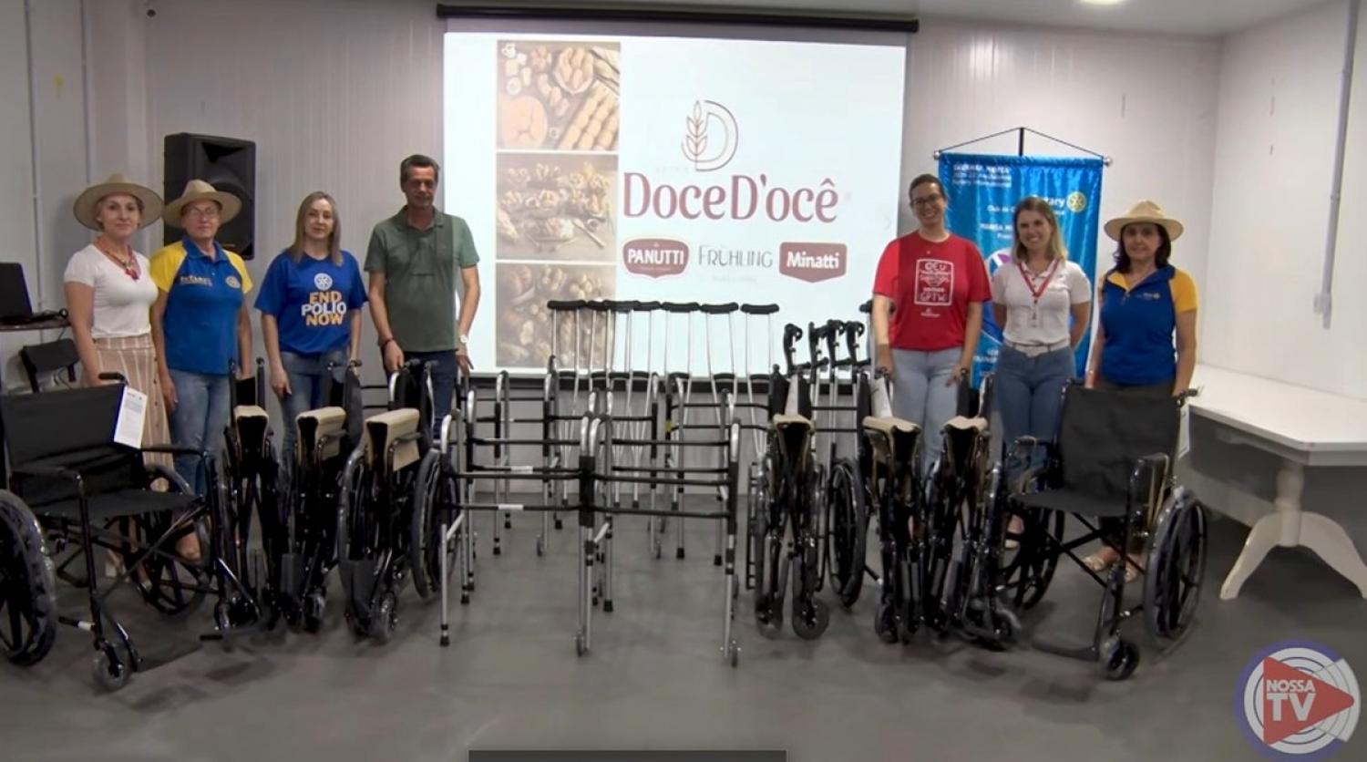 Oito cadeiras de rodas, dez andadores e dez muletas. Esse é o resultado de mais uma ação do grupo Doce D’Ocê de Chopinzinho em prol da comunidade. Os equipamentos ortopédicos foram doados ao Rotary Clube Chopinzinho Iguaçu na sexta-feira (18). A entrega aconteceu durante uma breve solenidade na sede do grupo, no Distrito Industrial de Chopinzinho. O ato contou com a presença de rotarianos e diretores do grupo.