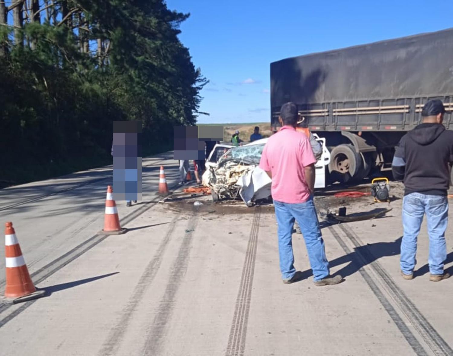 Um grave acidente na tarde desta quinta-feira (14) na PR-280, em Palmas, tirou a vida de duas pessoas. Joel Camargo Vieira, de 45 anos, e o filho dele, Cleiton de Oliveira Vieira, de 20 anos, morreram na hora. Ambos ocupavam um Gol que bateu contra o rodado de um caminhão Bitrem.