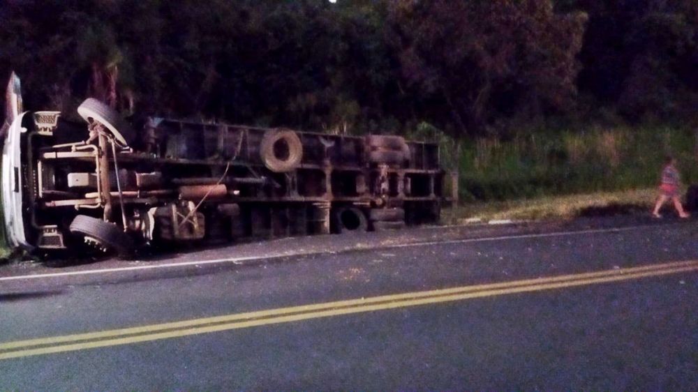 Um UP com placas de São Paulo (SP) bateu contra dois caminhões. Um deles, placas de Indaiatuba (SP), teve um rodado traseiro arrancado e tombou. O outro caminhão teve apenas um pequeno dano no para-choque dianteiro. A batida resultou na morte de uma mulher que dirigia o carro. Ela viajava acompanhada de uma criança de cinco anos e três adultos, duas mulheres de 60 e 62 anos residentes em São Paulo, e um homem de 95 anos, esse morador em Aurora (SC).