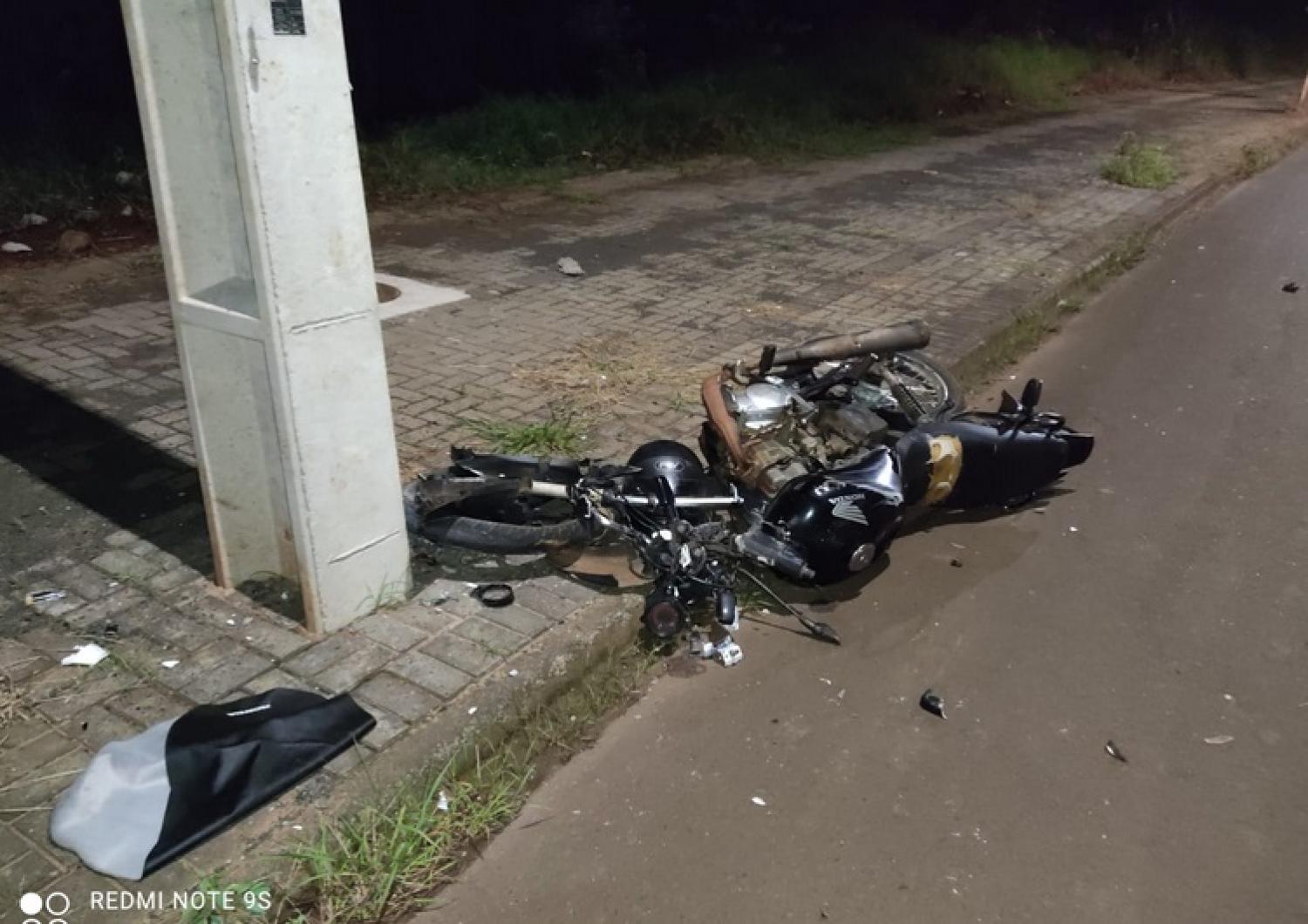 No local os policiais constataram que uma moto Honda CG 125 Fan, conduzida por Maike John, 25 anos, colidiu violentamente contra um poste da iluminação pública.