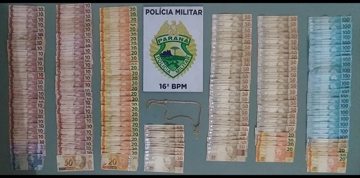 A Polícia Militar de Candói prendeu no domingo (08), por volta das 18h45, um rapaz de 21 anos, suspeito de ter participado de um assalto na cidade de Cantagalo, na mesma região, no sábado (07). O suspeito foi localizado no Bairro Santa Clara e portava um boa quantia em dinheiro, além de um colar de ouro.