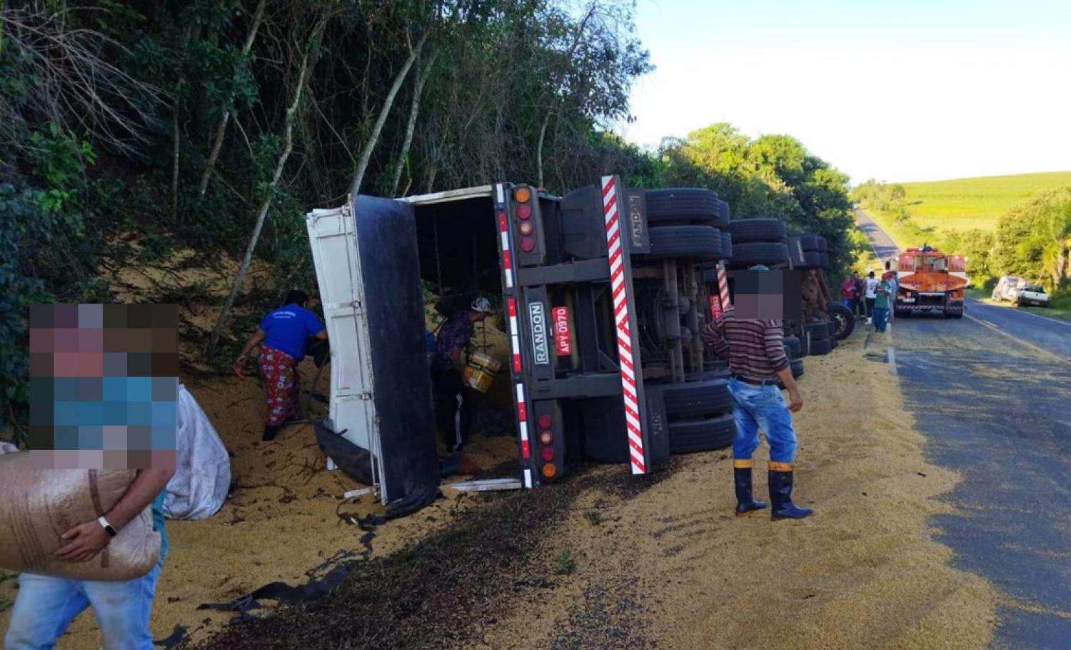 O bitrem estava carregado com soja a granel. A carga foi saqueada por populares antes mesmo da chegada da Polícia Rodoviária Estadual.