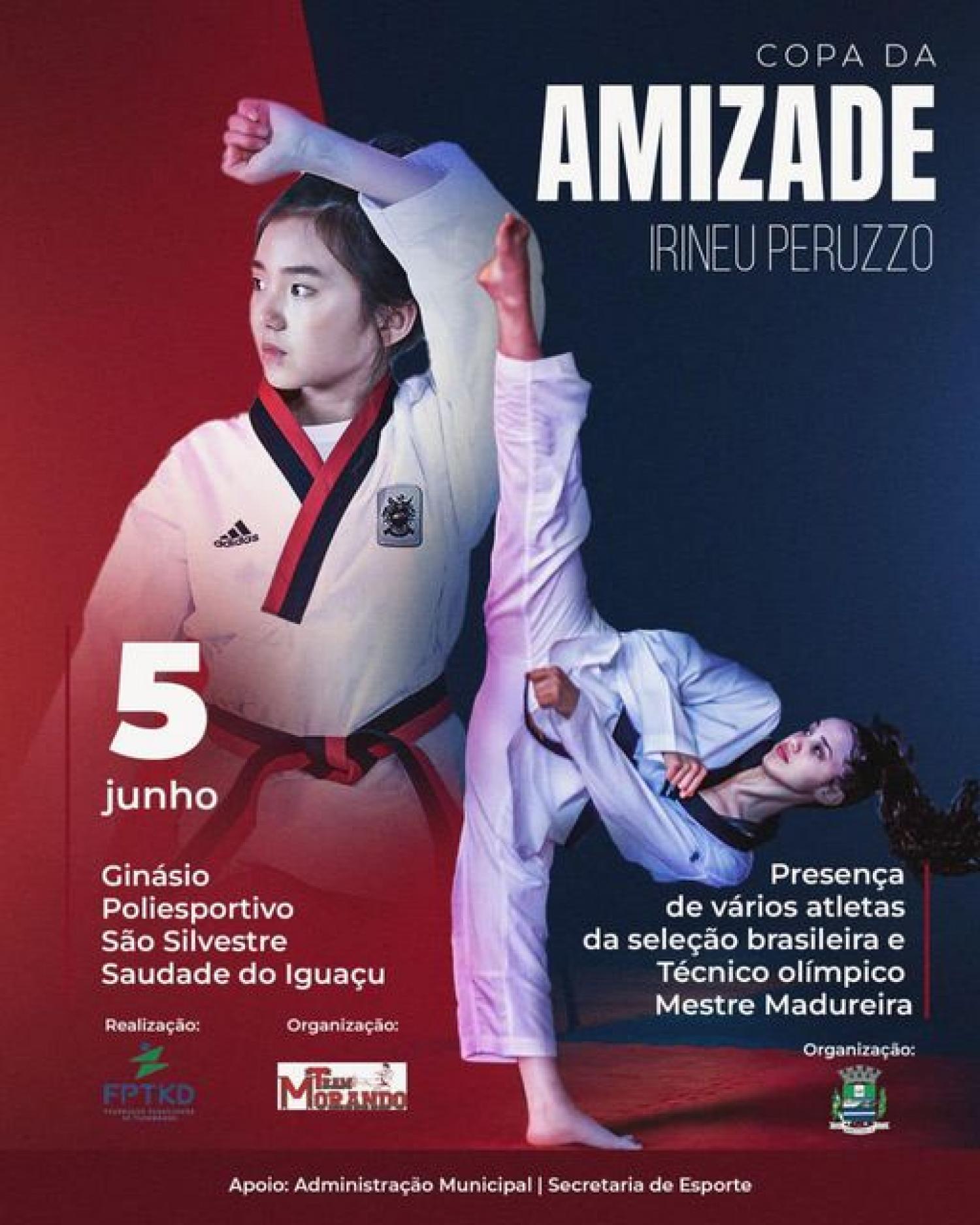 Aproveitando a força que o esporte representa no município, no dia 05 de junho a Team Morando juntamente com a Federação Paranaense de Taekwondo-FPTDK, e apoio da Prefeitura de Saudade do Iguaçu, através da Secretaria de Esportes e Cultura, estarão realizando a “1ª Copa da Amizade Irineu Peruzzo” de Taekwondo, que deverá contar com mais de 15 municípios participando com aproximadamente 400 atletas.